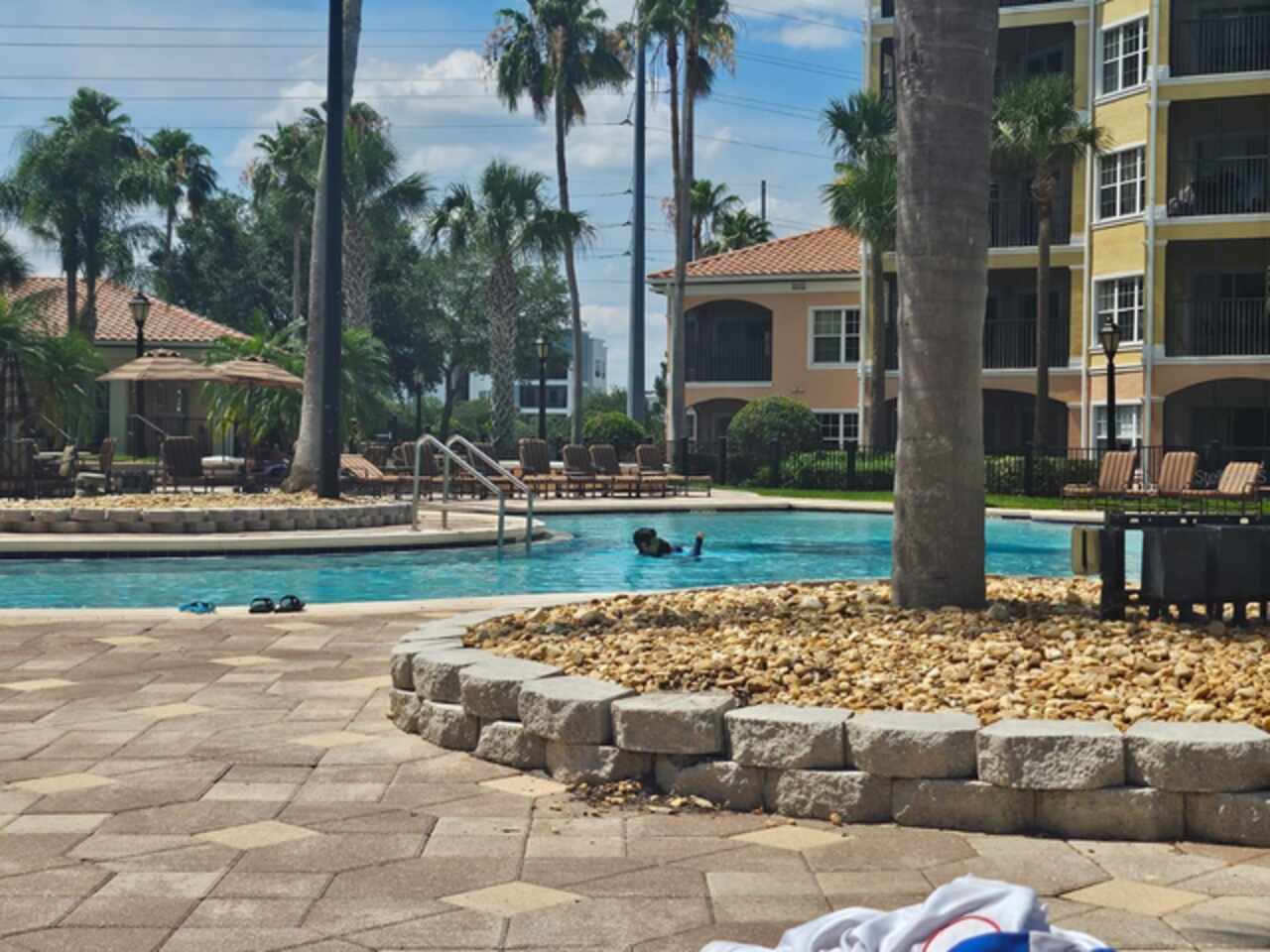 Units have the option of participating in the onsite rental program. If so, you'll have access to the pool, fitness center, clubhouse, etc. These amenities are not currently included in the monthly dues because the unit is sold outside of the program.