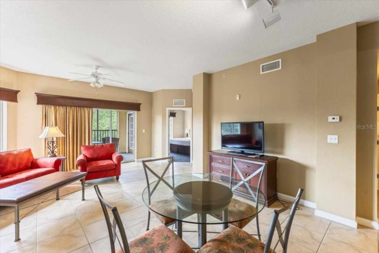GREAT INVESTMENT OPPORTUNITY! This FULLY FURNISHED 2-bedroom, 2-bathroom condo in the exclusive GATED Worldquest Resort is centrally located and zoned for **short-term rentals, ** making it turnkey and ready for rentals. Minutes from major attractions including the highly anticipated Universal’s EPIC UNIVERSE opening soon, this condo offers unbeatable convenience. Inside, you’ll find a bright and open layout with a kitchen featuring a breakfast bar, a spacious dining area, and a great room that opens to a corner balcony with views of beautiful conservation areas. Ceramic tile flows through the main living areas, with carpet in the bedrooms. This property is just minutes from top attractions and shopping areas. The short-term rental management company is already in place, so you can start generating income right away. Resort-style amenities include a large community pool with a Tiki Bar, a fitness center, and a clubhouse. Enjoy the convenience of on-site management, ensuring your investment is hassle-free. The HOA fee covers essentials like internet, phone, water, and sewer, so you can focus on earning income without the extra work. Take pleasure in a complementary shuttle to Walt Disney World. Don’t miss out on this opportunity to own in one of Orlando’s most sought-after locations. Call TODAY for more details and secure this incredible investment before it’s gone!