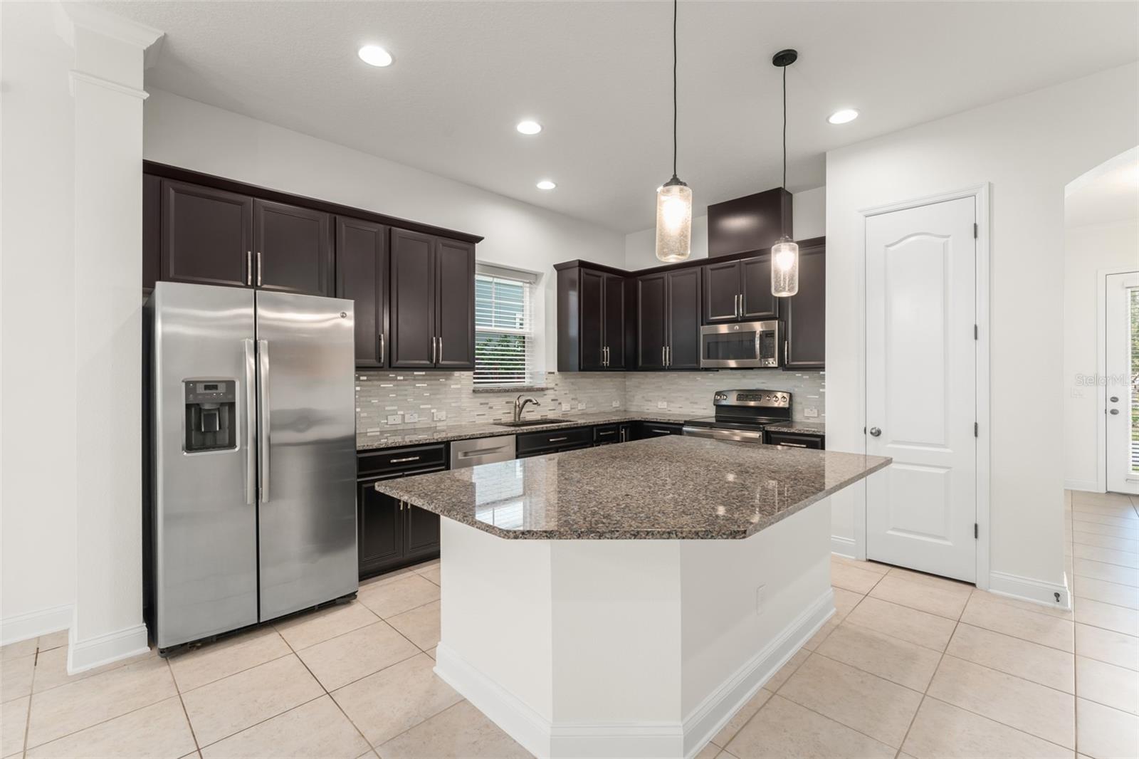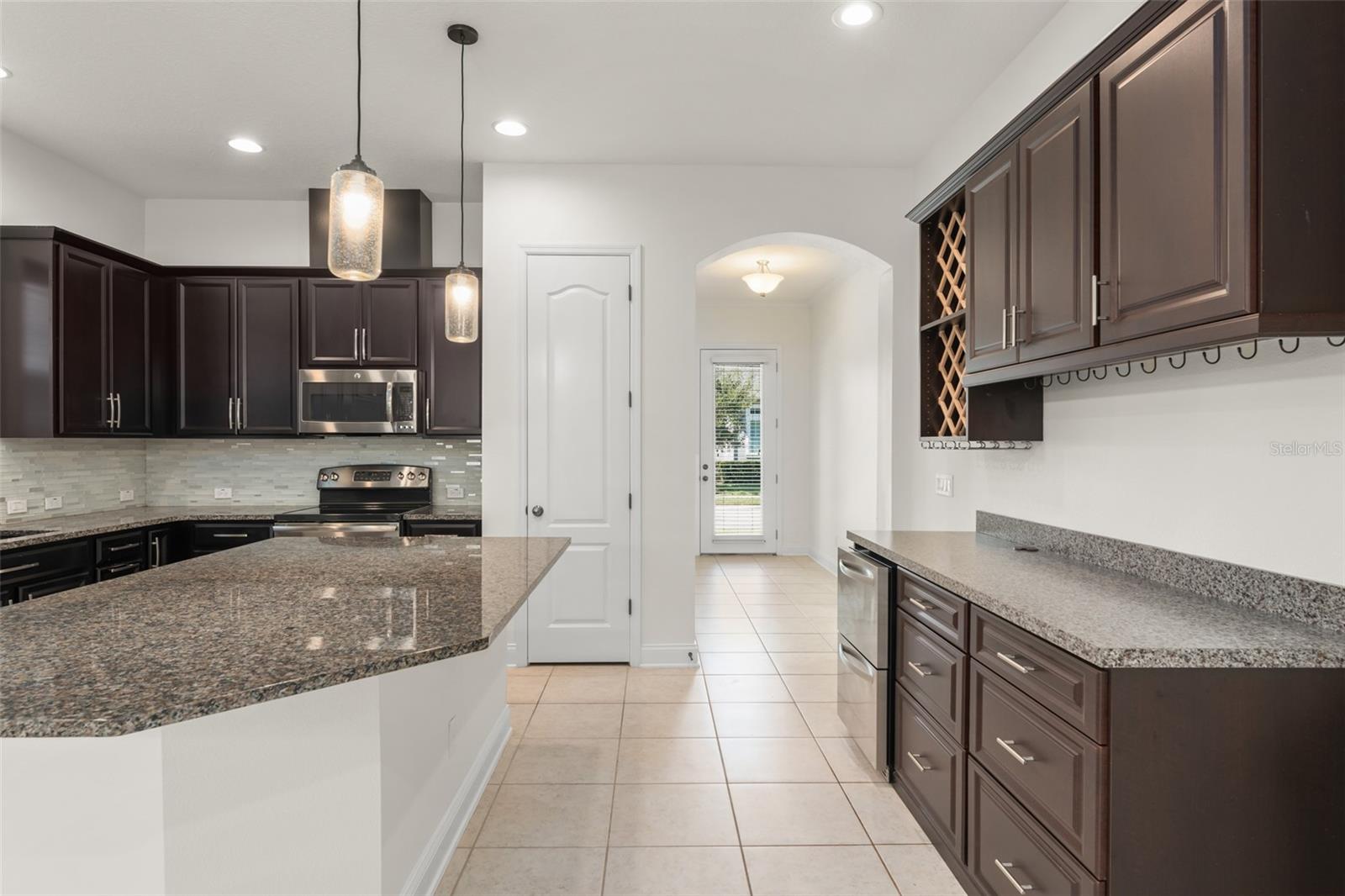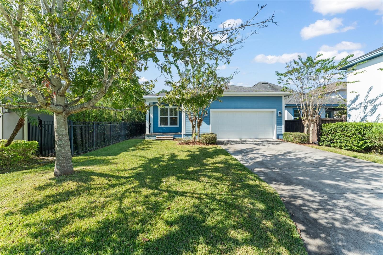 Welcome to this charming one-story craftsman-style home in Laureate Park, built by David Weekley Homes! From your front porch, enjoy peaceful views of the lake and park right outside your door.Inside, every square foot is thoughtfully designed with no wasted space. The inviting foyer opens to a versatile flex/office area, perfect for a home office, formal dining, or creative space. The chef’s kitchen features rich espresso cabinetry, an oversized island with abundant storage, and a window over the sink bringing in natural light. A built-in coffee bar with dual beverage refrigerators adds an extra touch of convenience. The kitchen flows seamlessly into the family room, highlighted by an elegant arch detail that defines the space while keeping it open and airy. The primary suite is privately tucked away in a split-bedroom layout, offering a spa-like bath with soaking tub, walk-in shower with decorative tile, dual sinks, and a spacious walk-in closet. Additional features include ceramic tile flooring throughout, a well-appointed laundry room with folding station and storage, and a cozy back porch—perfect for enjoying sunsets or hosting friends and family. Living in Laureate Park means access to incredible community amenities: a state-of-the-art fitness center, resort-style aquatic center with pools, volleyball and basketball courts, playgrounds, scenic parks, and more than 40 miles of trails. Conveniently located near Boxi Park, Lake Nona Town Center, USTA, Medical City, top-rated schools, and just minutes from major highways and Orlando International Airport.This beautiful home won’t last—schedule your showing today!