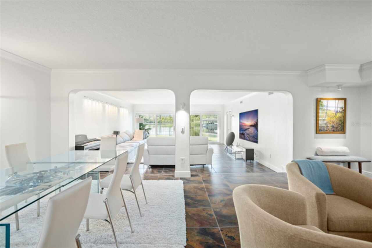 Crown Molding, Dry Bar, Eat-in Kitchen, L Dining, Living Room/Dining Room Combo, Open Floorplan, Primary Bedroom Main Floor, Stone Counters, Thermostat