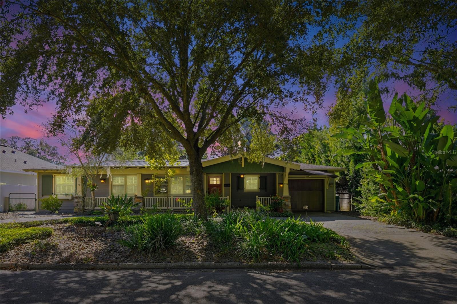One or more photo(s) has been virtually staged. WELCOME HOME, to one of College Park’s finest bungalows situated on an oversized lot with a paver circular driveway, overlooking Dartmouth Park - a wonderful park for a friends and family gathering, dog walking and a playground. Enjoy relaxing evenings on the spacious front porch or unwind in the backyard oasis beneath the covered patio, listening to the tranquil waterfall cascading into the goldfish pond. The professionally landscaped yard features exotic fruit and flowering trees, zero grass to mow, and LED landscape lighting throughout. This 4 bed - 2 bath home showcases authentic Craftsman character and restoration details, including plaster ceilings, solid wood doors and Old Oak Hardwood floors throughout, custom door hardware, stained glass window, and tall ceilings. The gourmet kitchen features solid wood KraftMaid cabinetry, granite countertops, glass tile backsplash, and GE Monogram slate appliances. The expansive Primary Bedroom offers vaulted ceilings, a marble floor and leads into a luxurious primary bath with a walk-through shower. Built to last with cementitious siding over block construction, vinyl railings, a shallow well, covered front and back patios and an A/C system with UV light filtration—this home is as solid as it is beautiful. A 12’ x 16’ backyard storage building provides extra space and can easily transform into a Man Cave or She Shed. Perfectly located—walk to the Post Office, local shops, and favorite restaurants. Just minutes to Downtown Orlando and Winter Park. Book your showing today for this truly rare find. 904 W. New Hampshire Street, College Park!