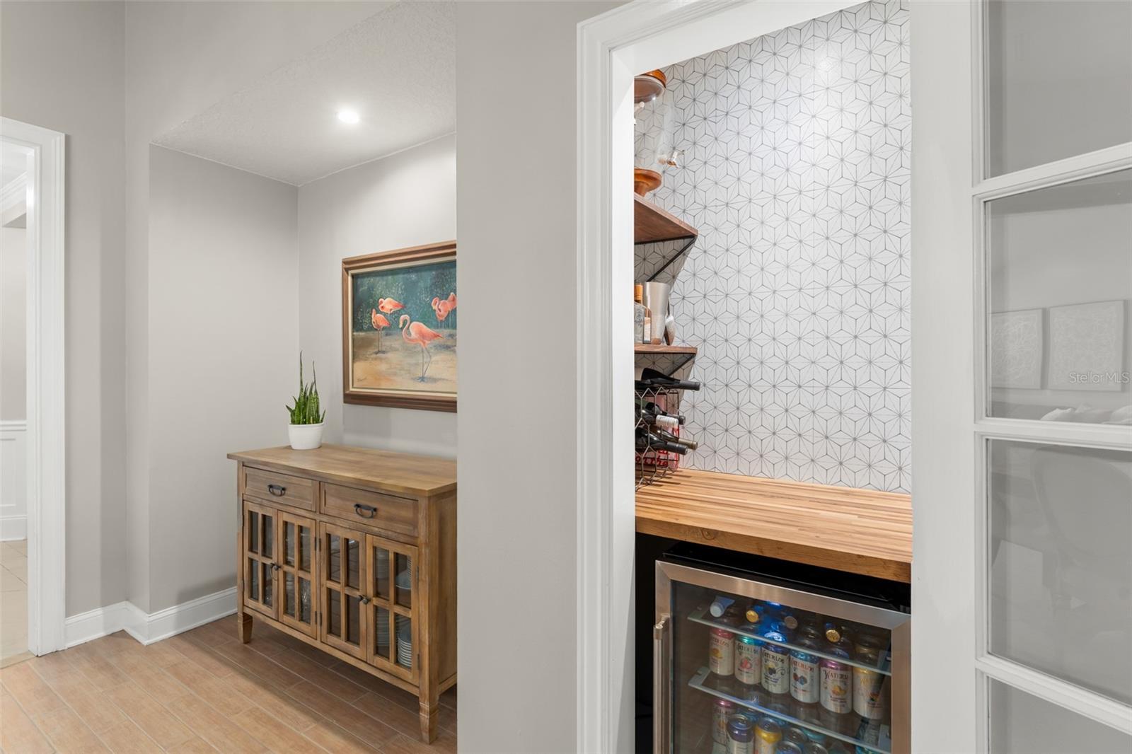 Under contract-accepting backup offers. Enjoy refined Florida living in this spacious 3-bedroom, 2.5-bath pool home with office, just a 5-minute walk from Bay Hill Golf Course—home of the Arnold Palmer Invitational. The split floor plan includes separate living, dining, and family rooms. New dual-pane, energy-efficient windows and sliding doors fill the interior with natural light. The kitchen features granite countertops, a new LG refrigerator, and a walk-in pantry with a beverage station. In the dining room, a built-in bar is tucked away with a wine refrigerator—perfect for entertaining. The laundry room includes a stainless steel utility sink, cabinetry, and a closet for additional storage. The primary suite opens to the pool and patio and features dual vanities, a California Closet system, and a spa-style walk-in shower with rainfall head. The office includes a skylight and built-in wardrobes for flexible use. Enjoy professional landscaping and a private backyard oasis shaded by mature trees, featuring a screened-in, heated saltwater pool, paver deck, outdoor shower, and convenient cabana bath—perfect for year-round relaxation. Additional highlights include a 2020 architectural shingle roof and a two-car garage with epoxy-finished floor. North Bay is a golf cart–friendly community with tennis courts, a low quarterly HOA, and zoning for top-rated Dr. Phillips schools. Just minutes from Restaurant Row and Orlando’s premier theme parks, this home offers the perfect blend of comfort, style, and location.
