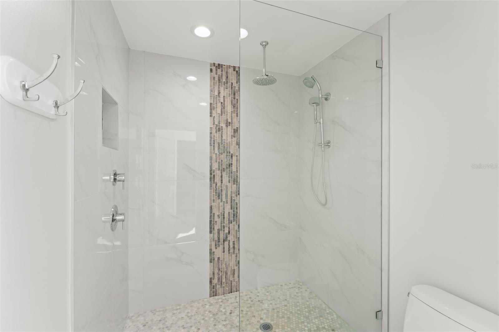 Lighting, Outdoor Shower, Rain Gutters, Sidewalk, Sliding Doors