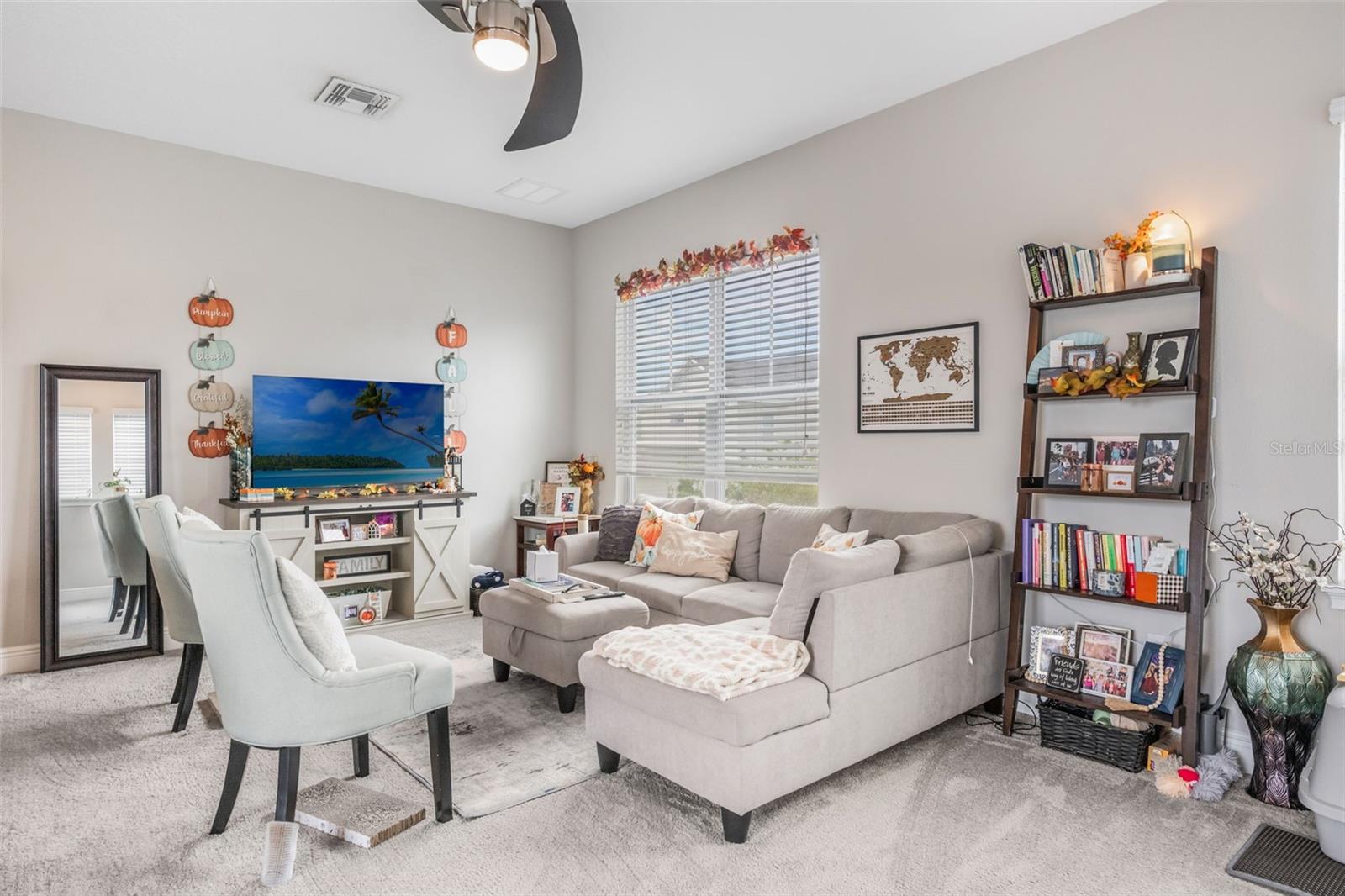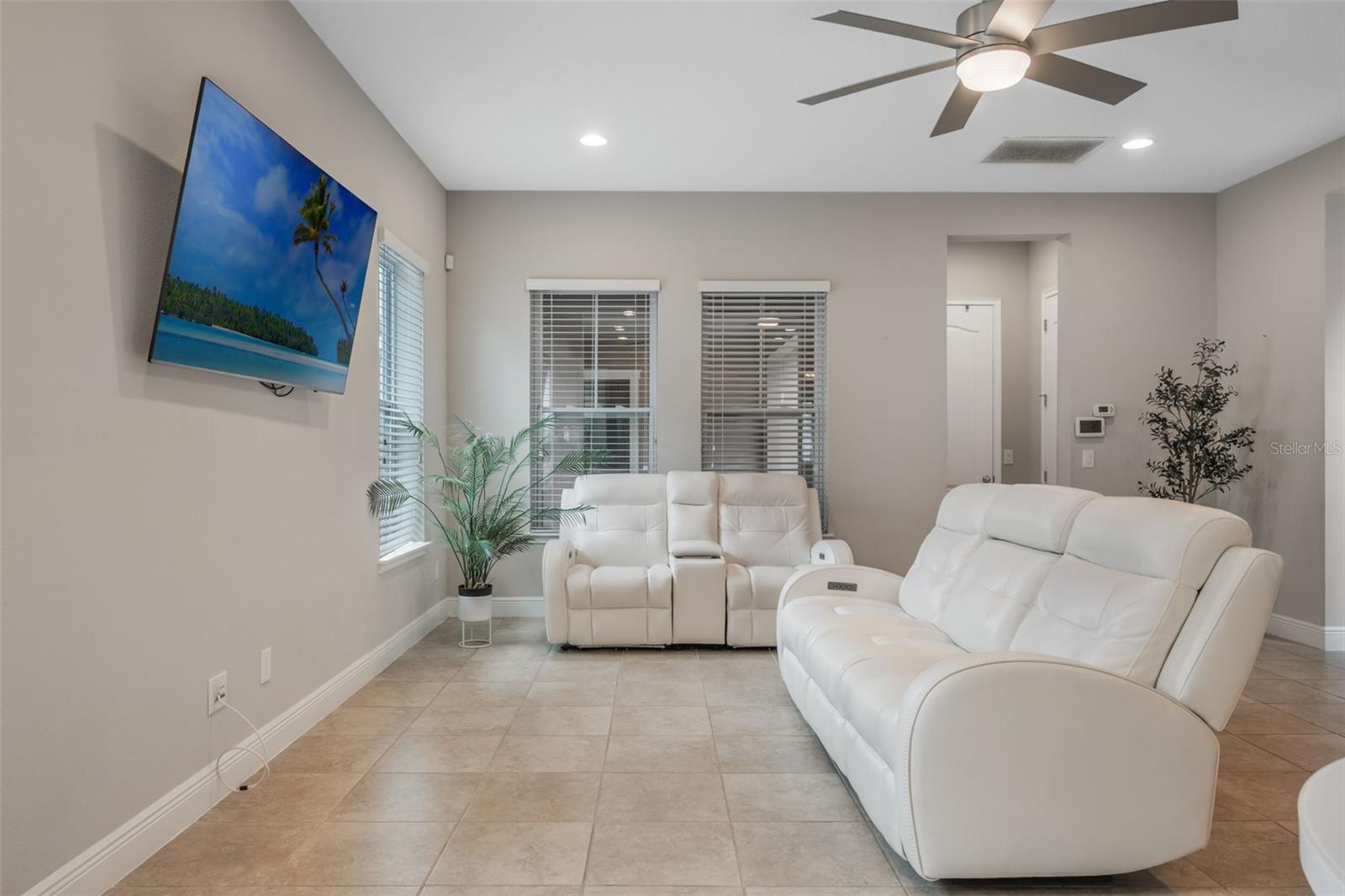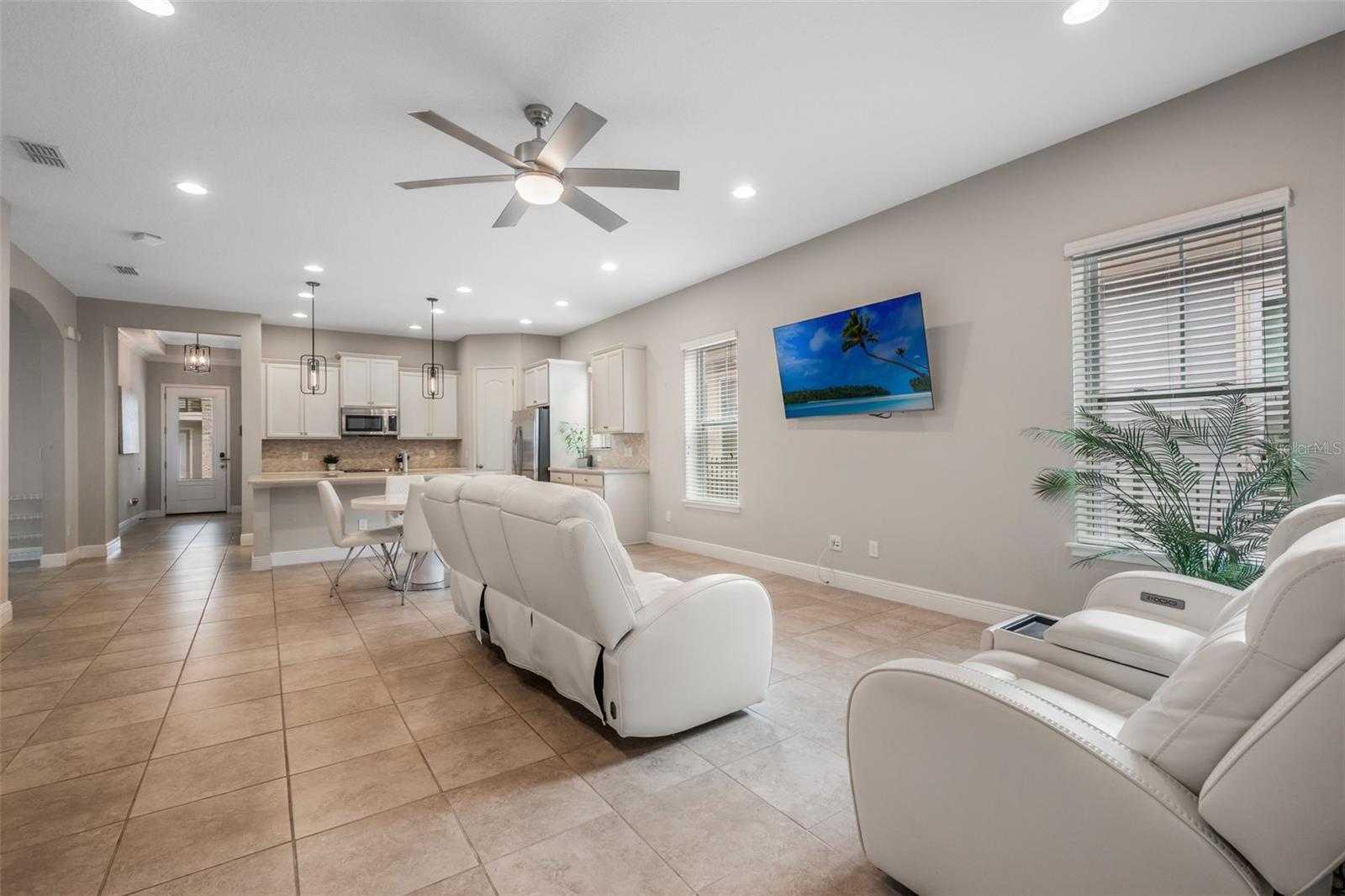 Ceiling Fans(s), Crown Molding, Kitchen/Family Room Combo, Open Floorplan, Primary Bedroom Main Floor, Split Bedroom, Stone Counters, Thermostat, Walk-In Closet(s), Window Treatments