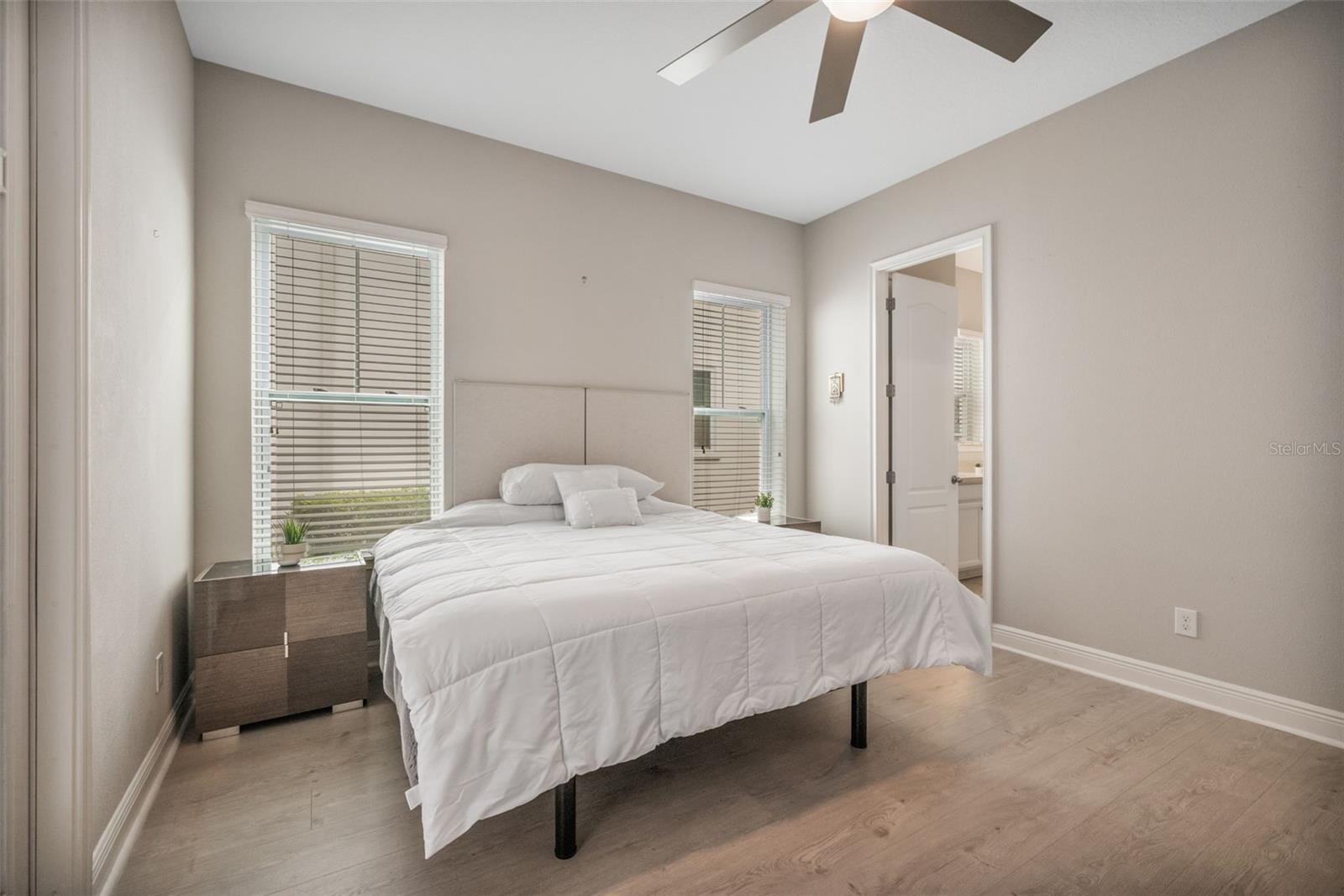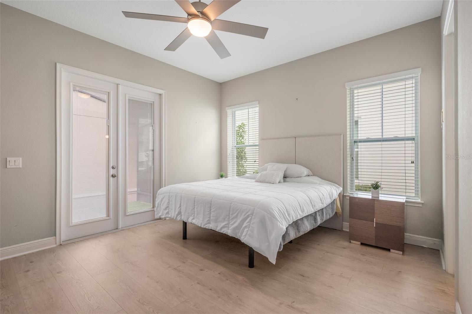 This unique property feels like two homes in one—the PRIVATE garage APARTMENT is an exceptional income-generating opportunity or perfect for multi-generational living. Located minutes away from the Orlando International Airport within Laureate Park; one of the most coveted communities in Lake Nona. The main residence offers 3-bedroom, 2-bath and includes a versatile flex area that can easily be converted to a fourth bedroom. Full of natural light, the kitchen features a luxury style with plenty of cabinetry, quartz countertops, deep drawers, stainless steel appliances and modern light fixtures. New luxury vinyl flooring in the bedrooms and new tile in the flex area. The spacious garage apartment has its own entrance, a beautiful kitchen with island, granite countertops, one bedroom, one bathroom, laundry, and living room area. The covered patio connects the main residence and the three-car garage. It is home of a custom built in grill with sink and refrigerator for those barbecue parties to entertain friends and family. The screened lanai is the perfect area to start or finish your days as it has a green space area to work out or meditate, and a jacuzzi/hot tub which can be easily access as well from the primary bedroom for convenience. On the side of the house there is a fenced runway that can be used for gardening or as your pet area. The community offers a state-of-the art fitness center, an aquatic center with a tranquil pool, a lap pool, and a splash pool, basketball, tennis courts, walking and bicycle trails, dog parks, playgrounds, community garden and more. Located minutes away from the Orlando International airport, Medical City, Boxi park, USTA National Campus, VA and Neumors hospital. Easy access to main highways like 417, 528 as well as to theme parks and beautiful Florida beaches. Schedule your tour today and enjoy the vibrant Lake Nona lifestyle, with world-class dining, top-rated schools, and cutting-edge innovation at your doorstep. A rare opportunity for those who seek elegance, comfort, and investment potential—all in one.