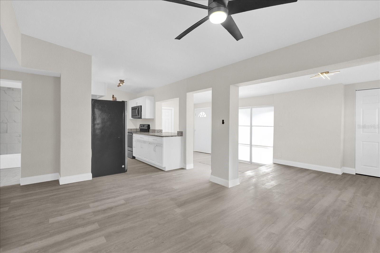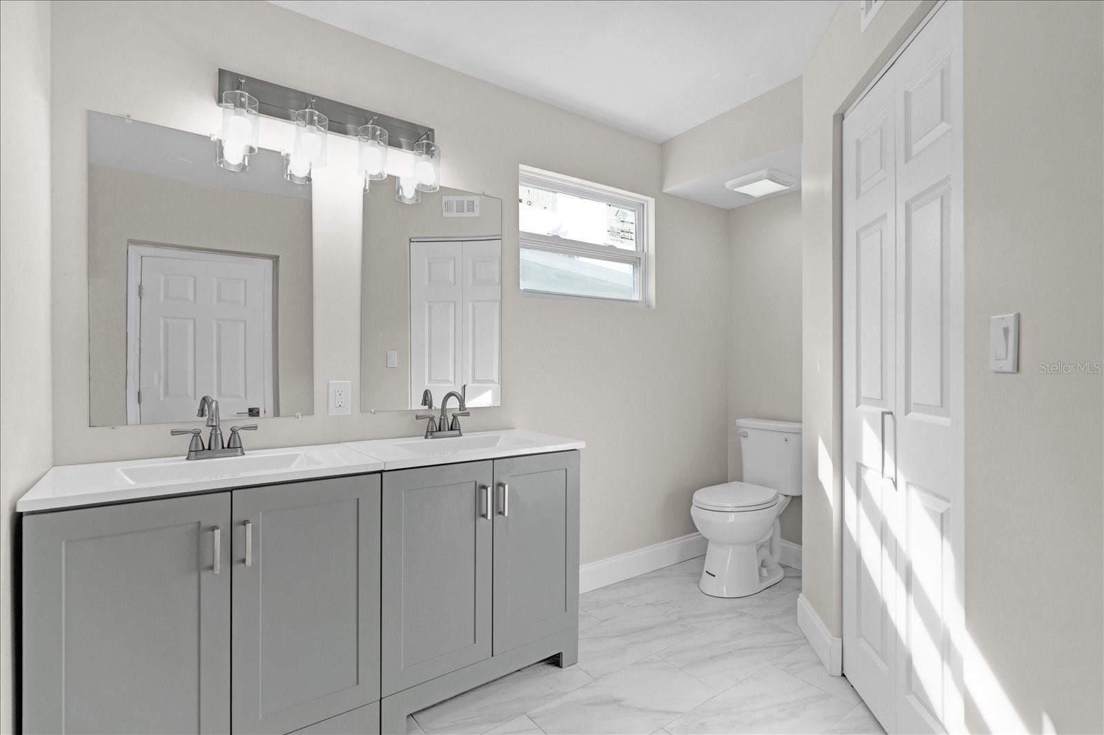 SELLER CREDIT OF $5000 - BEAUTIFULLY DESIGNED AND SPACIOUS - This spacious home sits on an over 6000 square-foot lot, featuring 4 bedrooms, as well as a separate office space, and a large backyard with a shed! Upon entry, you will find the open format kitchen and living, with a distinct bar area, separate dining, and living room, with plenty of light. Walking past the living is the first bedroom to your left, and the full hallway bathroom to your right, featuring new tile, commode, vanity and lighting. Through the hallway you will find the office space/den, and past the office space is another bedroom to your left, and the huge master bedroom to your right, featuring its own separate entry, and a massive master ensuite bathroom - with new tile throughout, a double shower, double vanity, walk-in closet, and new commode. The fourth bedroom is to your right upon entry, perfect for a guest bedroom as it features its own entry through the back of the bedroom as well. This home features new flooring throughout, as well as lighting, and a 2022 roof, and a recent water heater and AC. The backyard is huge, perfect for those cool night, and features a separate space for storage or a great hangout area! This home would also be ideal for rental as the master has its own entry and the guest bedroom does too! Come see this beautiful home today!