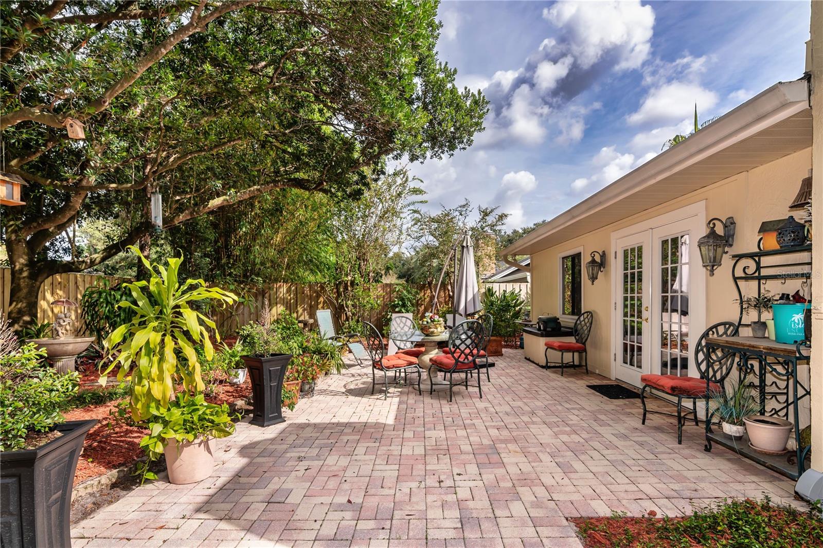 Expect to be impressed with this charming, updated home in the sought after Greenview at Dover community. With high-end upgrades & a resort-style private backyard, this home has the WOW factor on many levels. It starts with great curb appeal – beautifully landscaped front, updated roof (2020) and decorative tile entry walkway greet you upon arrival. Layout features kitchen in front, living & dining room in the back and a split bedroom plan. Step inside to a wide entry foyer with a large custom archway through which you’ll have access to the kitchen, laundry room and living/dining space. Contemporary kitchen features granite counters, under-counter lighting, plenty of counter/cabinet space, an opening over the sink that gives you views of the living/dining area, stainless appliances (included) and eat-in nook that gets the morning sun. Living room features a wood burning fireplace – ideal for those chilly winter nights. It has a wall-to-wall hearth, full height mirror above the mantel and spotlights. The living/dining areas make great gathering spaces – perfect for hosting holidays and celebrations. Primary suite bedroom boasts vaulted ceiling, an ensuite bath w/shower and a striking custom closet with plenty of shelving and hanging space. From the bathroom, you’ll have direct access to a private patio – ideal spot for your morning coffee. One secondary bedroom has served as an office w/built-in shelving – easy to convert back to a bedroom with the addition of a closet. Other notable features – (1) convenient interior laundry room w/work sink and abundance of cabinetry, (2) recently added estate shutters, (3) built-in storage cabinetry in garage, (4) upgraded siding (cement board) - 2020, (5) newer heat pump, and (6) multi-zone irrigation system. One big reason to love this home is all that you have out back - French door access to a backyard that’s lushly landscaped and fenced – dotted with birdbaths, garden bench and an Henri Studio luxury garden fountain, giving you privacy for when you want to relax, BBQ or entertain on your 29’ x 16’ brick patio. Excellent location – 2 minutes to SR 408, 4 minutes to your Publix and about 15 minutes to the airport/SR 528. Being minutes from essential shopping/dining/parks and in an “A” rated school district is a plus! This home has been well-maintained and shows well; come see all that it has to offer. You’ll love living here! **This home may qualify for special community lending programs offering zero down financing and no private mortgage insurance.**Seller willing to entertain credit for closing costs**