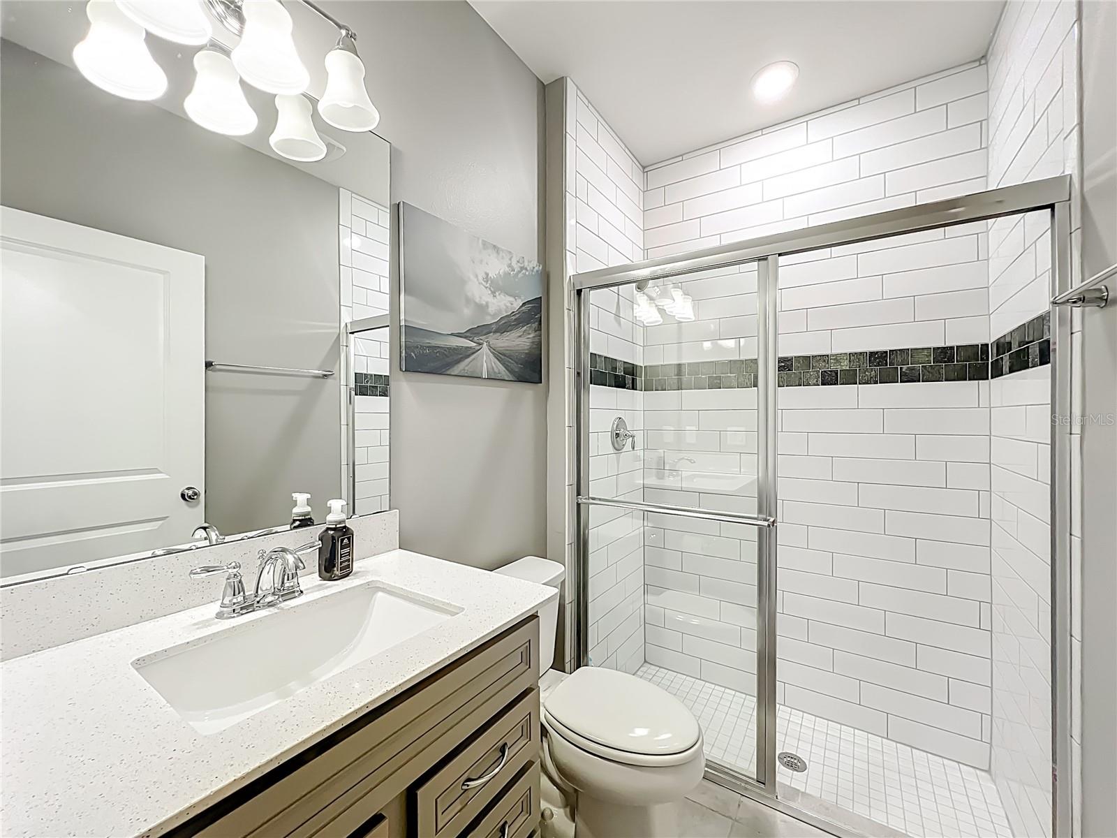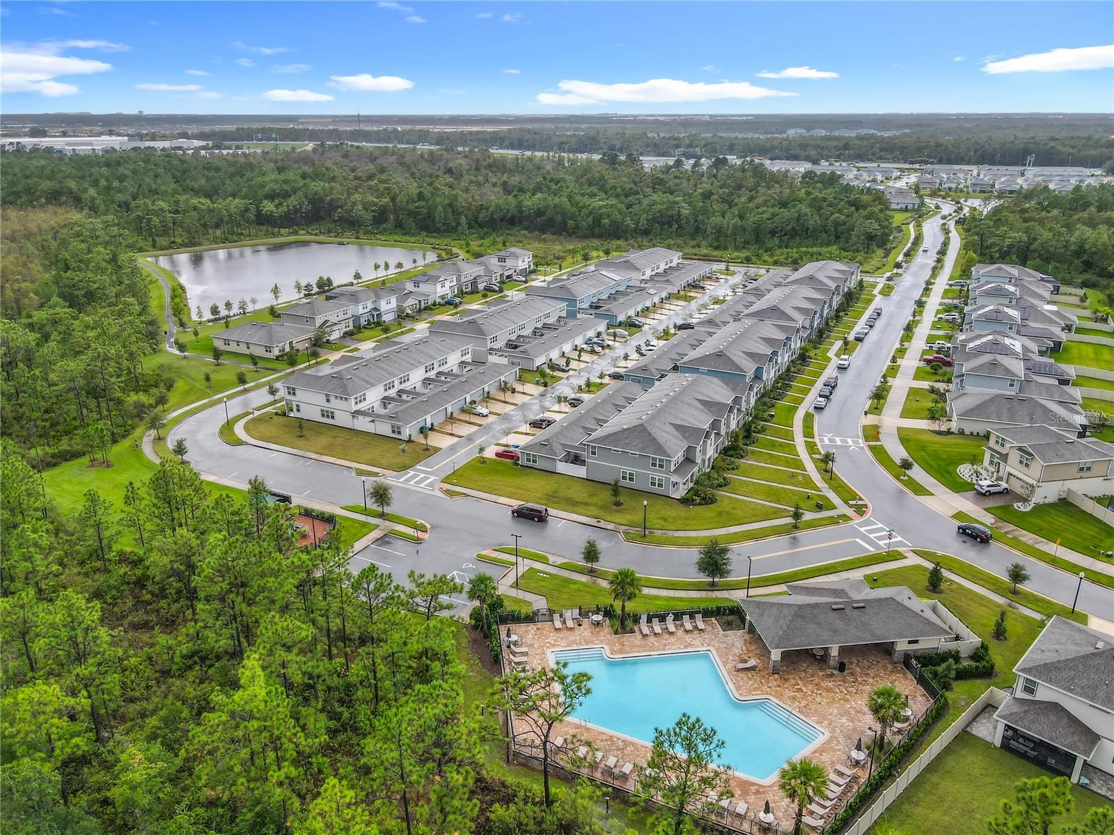 Welcome to this stunning better than NEW two-story townhome featuring a private courtyard that perfectly connects the main home to the two-car rear-entry garage. Ideally situated in the heart of Central Florida, this home offers exceptional convenience — just minutes to Orlando International Airport, Lake Nona, UCF, Valencia College, Seminole State College, and quick access to SR 417 and SR 408. Inside, you’ll find a thoughtfully designed floor plan with tile flooring throughout the downstairs living areas, an inviting open-concept kitchen, and a bedroom with a full bath on the main level—ideal for guests or a home office. The kitchen boasts beautiful wood cabinetry, granite countertops, a large breakfast bar with seating, subway tile backsplash, stainless steel appliances, and an oversized stainless-steel sink—perfect for both everyday living and entertaining. Upstairs, the spacious primary suite features an oversized walk-in closet, dual vanities with quartz countertops, a large walk-in shower, and a private water closet. A landing area, two additional bedrooms, the laundry room and a full bath with a tub/shower combo complete the upper level. This home stands out with extensive CUSTOM trim carpentry throughout, updated finishes, and tile extending to the ceiling in all shower areas, adding a touch of luxury and durability. The private courtyard offers the perfect spot to relax or entertain, and guest parking is conveniently located right outside the front door. Enjoy low-maintenance living with modern upgrades, plenty of natural light, and an unbeatable location close to shopping, dining, Young Pine Community Park and major employers. Schedule your private showing today — this upgraded townhome is move-in ready and won’t last long!
