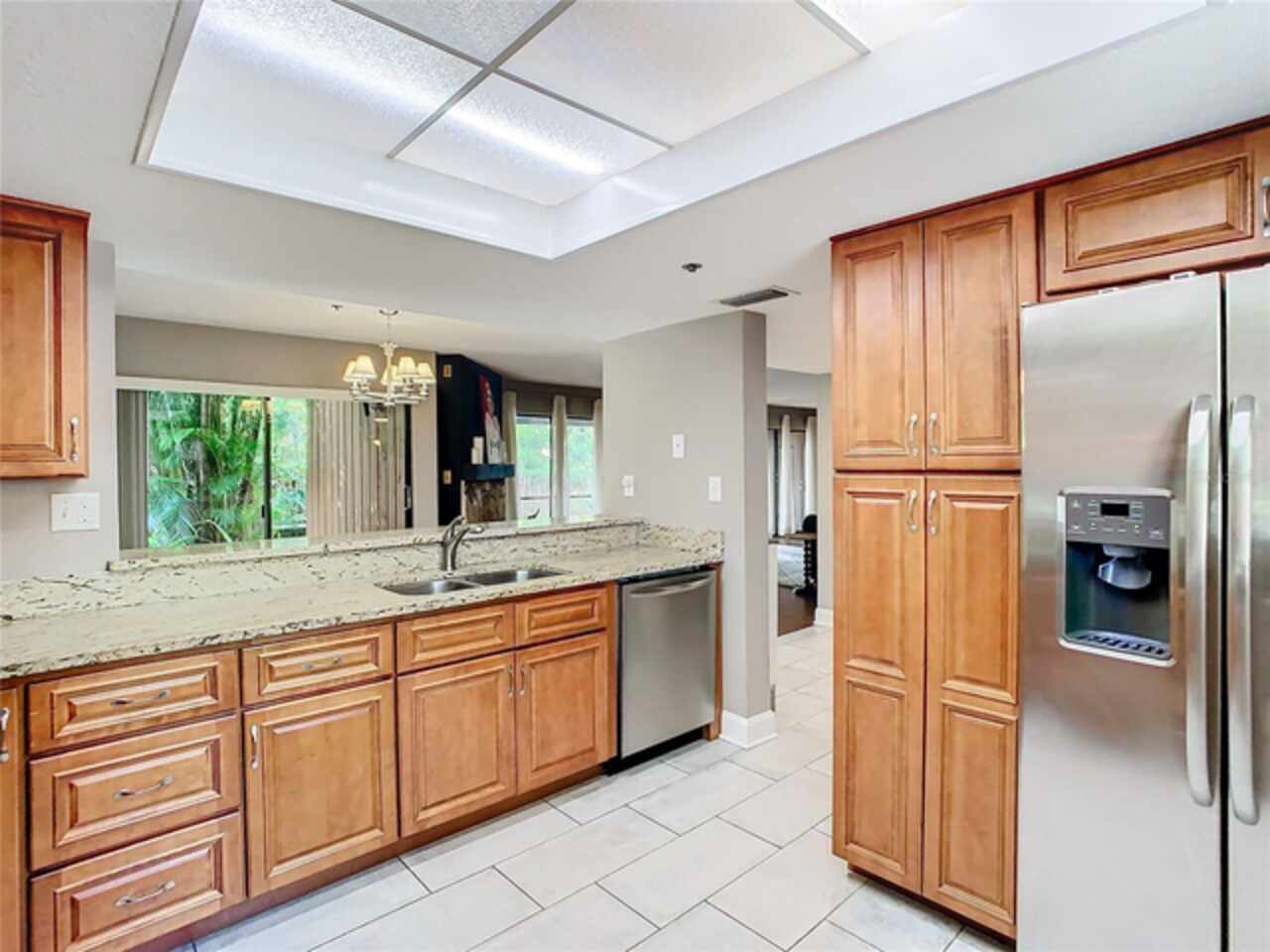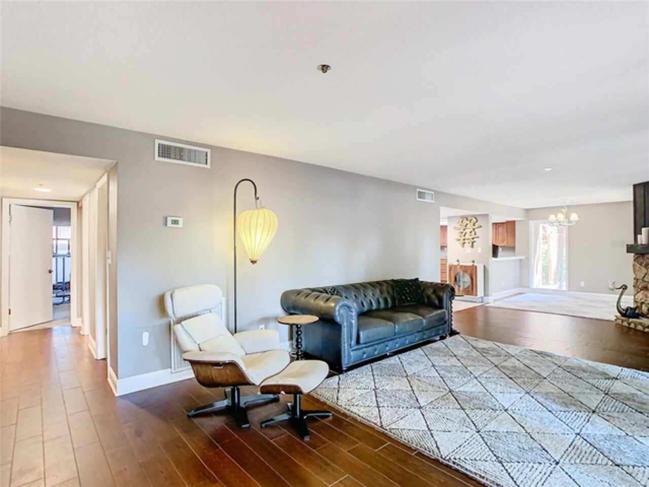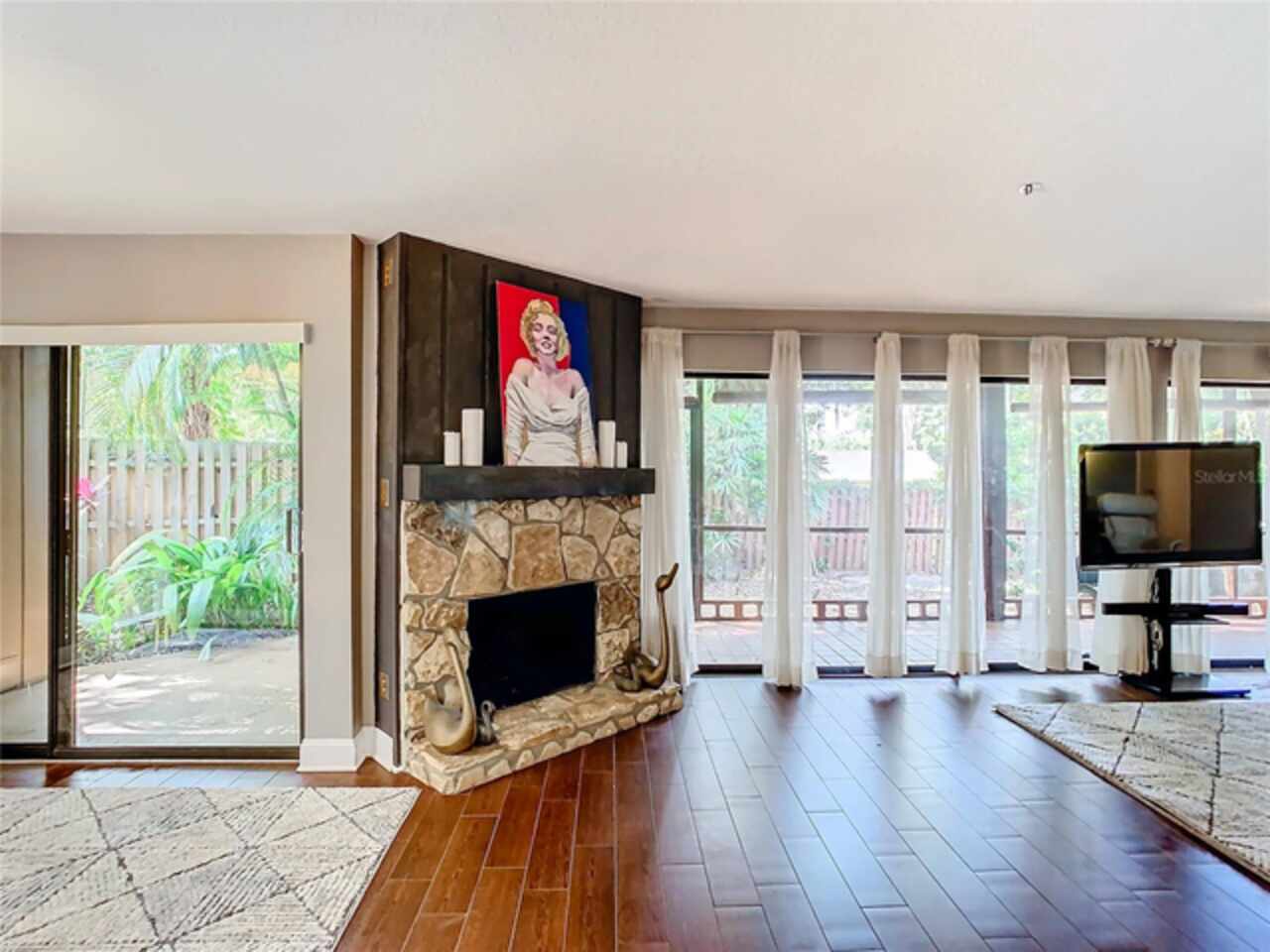 Discover the epitome of downtown Orlando living in this exquisite, turn-key end unit condo, nestled within a vibrant gated community of One Thousand Oaks. Boasting an expansive layout bathed in natural light, this residence offers a seamless blend of luxury and comfort. The heart of the home is a generously sized kitchen, adorned with solid wood cabinets, premium stainless-steel appliances, and elegant granite countertops, making every cooking experience a delight. The adjacent dining area comfortably accommodates a large dining table, ideal for gatherings. Step into the inviting living room, where floor-to-ceiling sliders open up to an expansive covered lanai, extending your living space into the outdoors. The charming wood-burning fireplace adds a cozy ambiance, perfect for relaxing evenings. Privacy is paramount, with the master bedroom thoughtfully separated from the other rooms, featuring its own private covered patio for serene moments. The master ensuite is a sanctuary of its own, with a luxuriously large shower and modern updates. Beyond the master lie three additional well-proportioned bedrooms, one currently serving as a tranquil reading nook but easily convertible to a den or office, providing ample flexibility to meet your lifestyle needs. This condo's location is unparalleled, minutes from the SODO district and within an A-rated school system, putting you at the heart of Orlando's bustling scene while offering a peaceful retreat. Enjoy easy access to dining, shopping, entertainment, parks, and essential services. One Thousand Oaks not only offers the convenience of a community pool, clubhouse, and tennis courts but also includes a covered assigned parking spot and generous storage. Experience the best of urban living with a touch of Florida's lush landscape, all waiting for you in this impeccable downtown sanctuary.