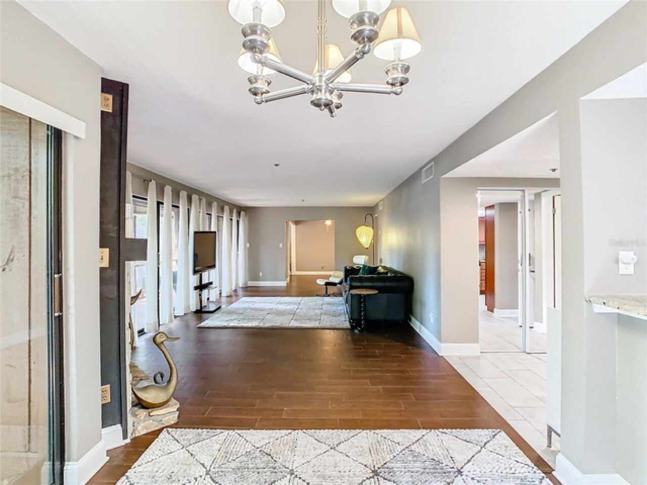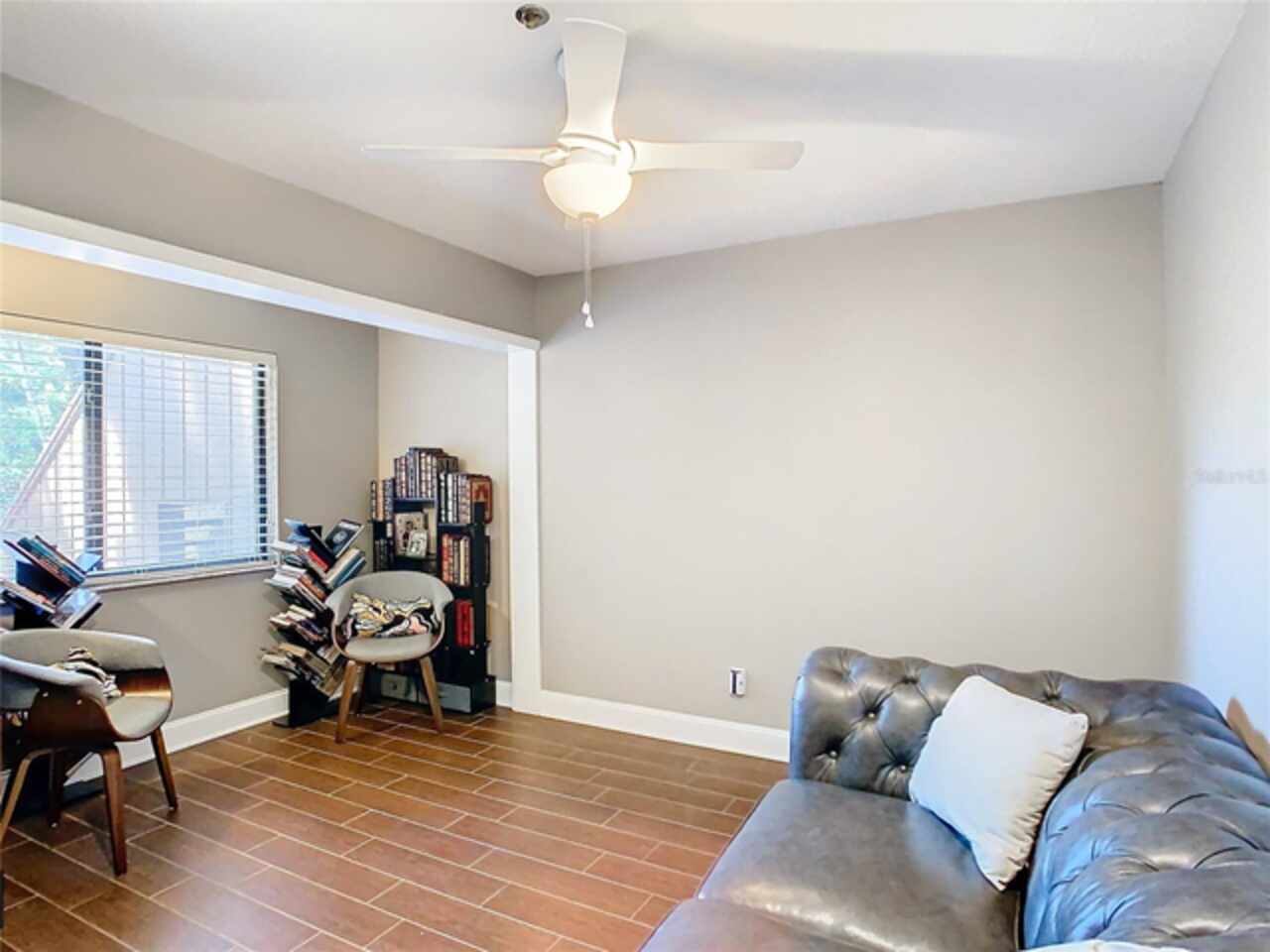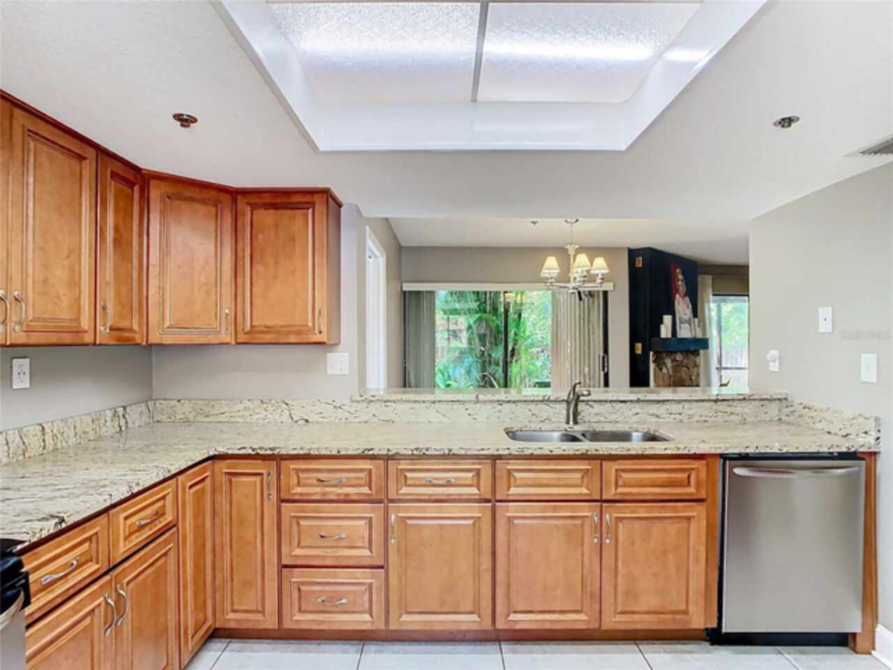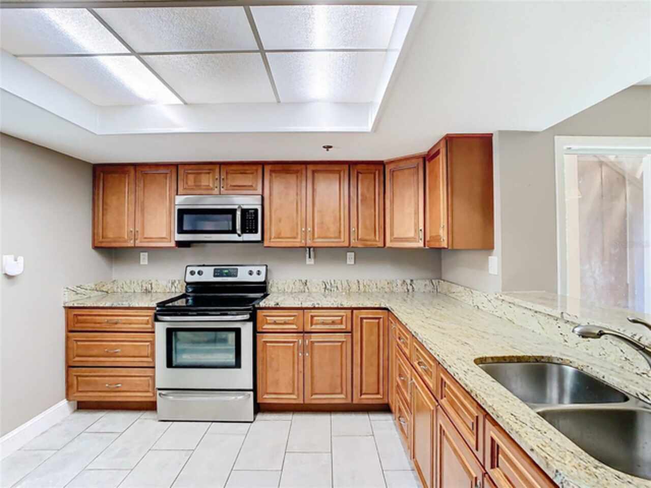 Discover the epitome of downtown Orlando living in this exquisite, turn-key end unit condo, nestled within a vibrant gated community of One Thousand Oaks. Boasting an expansive layout bathed in natural light, this residence offers a seamless blend of luxury and comfort. The heart of the home is a generously sized kitchen, adorned with solid wood cabinets, premium stainless-steel appliances, and elegant granite countertops, making every cooking experience a delight. The adjacent dining area comfortably accommodates a large dining table, ideal for gatherings. Step into the inviting living room, where floor-to-ceiling sliders open up to an expansive covered lanai, extending your living space into the outdoors. The charming wood-burning fireplace adds a cozy ambiance, perfect for relaxing evenings. Privacy is paramount, with the master bedroom thoughtfully separated from the other rooms, featuring its own private covered patio for serene moments. The master ensuite is a sanctuary of its own, with a luxuriously large shower and modern updates. Beyond the master lie three additional well-proportioned bedrooms, one currently serving as a tranquil reading nook but easily convertible to a den or office, providing ample flexibility to meet your lifestyle needs. This condo's location is unparalleled, minutes from the SODO district and within an A-rated school system, putting you at the heart of Orlando's bustling scene while offering a peaceful retreat. Enjoy easy access to dining, shopping, entertainment, parks, and essential services. One Thousand Oaks not only offers the convenience of a community pool, clubhouse, and tennis courts but also includes a covered assigned parking spot and generous storage. Experience the best of urban living with a touch of Florida's lush landscape, all waiting for you in this impeccable downtown sanctuary.