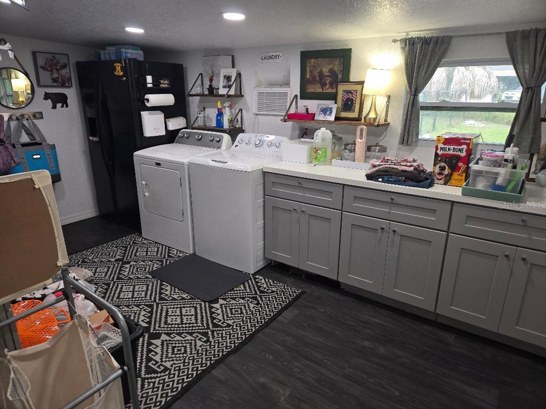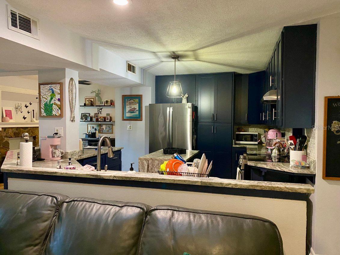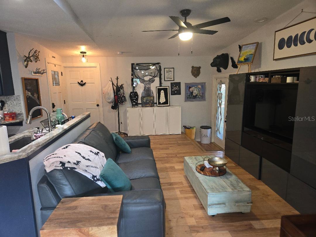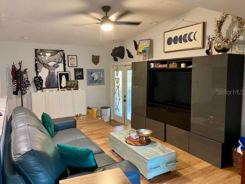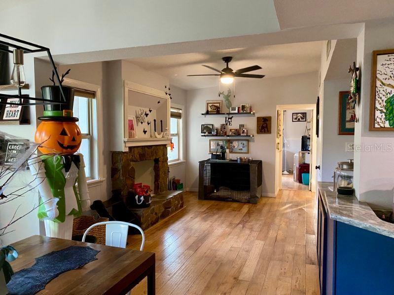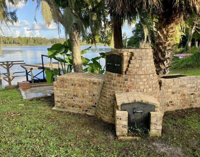 WAIT, WHAT? Yes, that price listed above is correct for this Florida home on Lake Georgia! Not only is Lake Georgia a ski lake, this 4 bedroom 3 bath renovated home is complete with a dock, boat ramp and no HOA! The dock is constructed of pressure treated wood and was rebuilt in 2018. (Dock supports are cemented into pvc pipe.) As you approach the front entry, the 1 car carport is currently being used as a covered front porch. To the left of the entry door is the door to the laundry room. The 165 sq ft air conditioned laundry room is not included in the square footage of the home which is shown as 1770 sq ft. Completely updated kithen with kitchen island, new cabinets, tiled backsplash, new range and refrigerator plus granite counter tops. Wood and tile floors throughout. A wood burning fireplace is in the family room. The primary bedroom has its own private bath (Granite counter top in bath. Tub with shower), walk in closet and a built in closet. The guest suite (4th bedroom) has its own full private bath and double doors that open to the screened patio/the closets were added and are attached. The 2nd and 3rd bedrooms share a full bath (tub and shower) off the hallway. There is a mini split in the primary bedroom and in the guest suite to add to your cooling/heating comfort in addition to the central air/heat system. 2 tankless water heaters (gas), Fenced yard with double gates at the front and rear allows for easy access for you to launch your boat from the boat ramp. Brick pizza oven/grill just outside the fenced area and a kayak/canoe storage rack at the waters edge next to the dock. Enjoy every morning sunrise while sipping your coffee in the rear screened paito. This home has a terminte bond that was renewed this year. Storage shed on the property plus extra storage closets in the laurndry room too. Room measurements and dock measurements are approximate. Buyer will need to verify all room measurements and schools.
