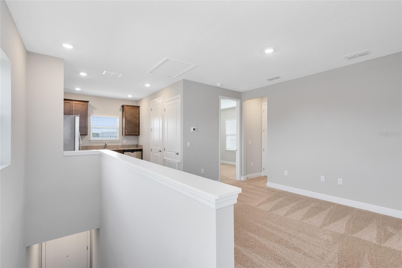 Built-in Features, Eat-in Kitchen, High Ceilings, Kitchen/Family Room Combo, Living Room/Dining Room Combo, Open Floorplan, PrimaryBedroom Upstairs, Solid Wood Cabinets, Stone Counters, Thermostat, Walk-In Closet(s), Window Treatments