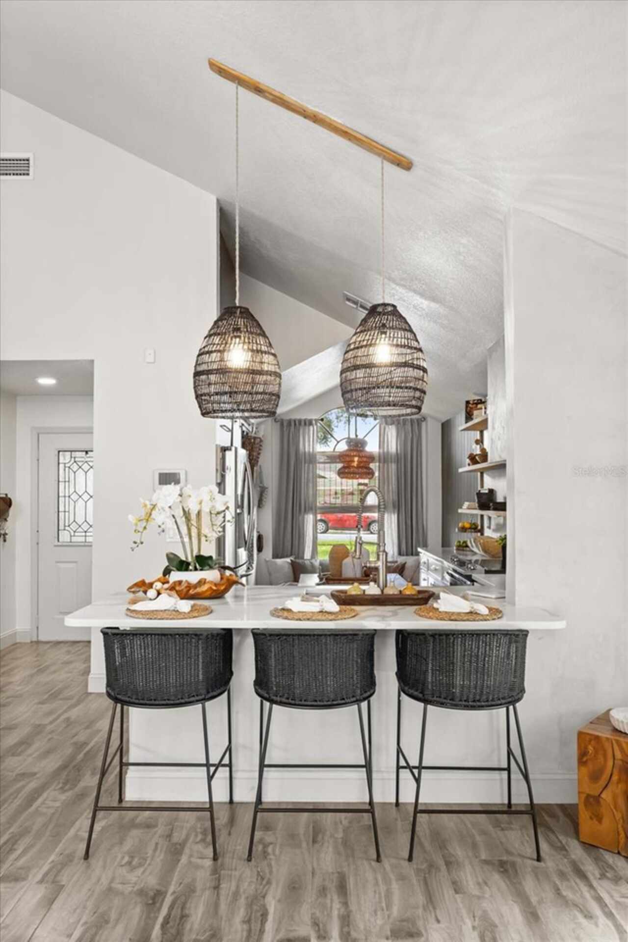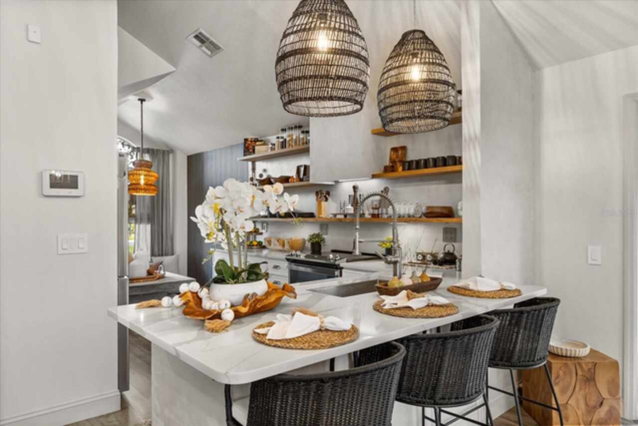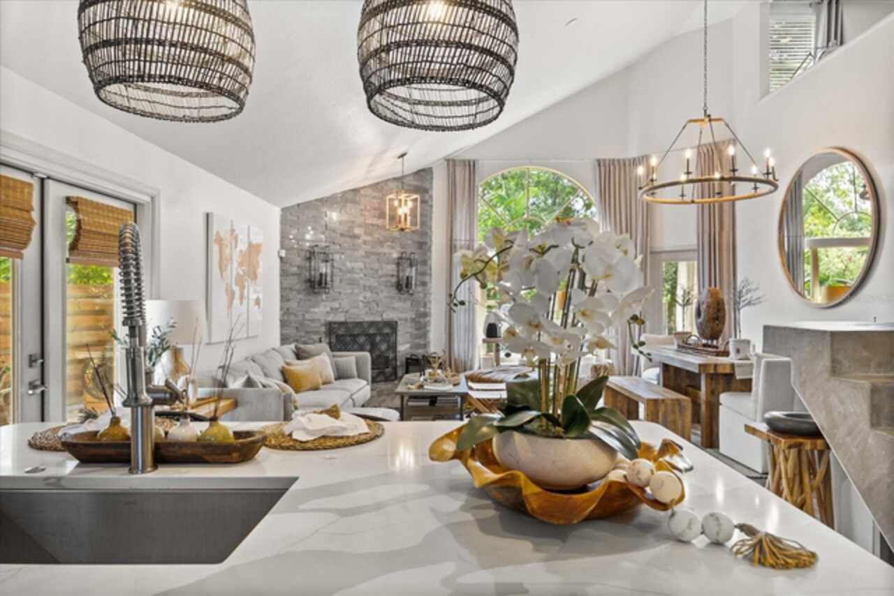 Welcome to Your Waterfront Retreat! This isn’t just a home — it’s a lifestyle. Thoughtfully redesigned from top to bottom, this fully remodeled beauty blends modern design, luxurious finishes, and an unbeatable outdoor living experience. Step inside to soaring vaulted ceilings and an open floor plan that create an immediate sense of space and light. The first-floor Primary Suite offers comfort and convenience, while the additional bedrooms and spacious loft upstairs provide flexibility for family, guests, or a home office. The designer kitchen is a true showpiece, featuring sleek microcement walls, warm wooden floating shelves, and quartz countertops — the perfect blend of style and function for everyday cooking or entertaining in style. Step outside and you’ll find your own private secluded backyard oasis: a sparkling pool, custom outdoor kitchen, mature oak trees and fully fenced yard backing to the tranquil pond views with calming sounds of the fountain. Whether it’s sunrise coffee by the water, sunset dinners, or lively weekend BBQs, this space was made for making memories. With a brand-new roof (2025) and new AC unit (2025), this home is move-in ready and built for years of worry-free living. Perfectly situated in one of Orlando’s most desirable neighborhoods of Lake Hiawasee you’ll enjoy quick access to shopping, dining, major highways, and everything Central Florida boasts. Schedule your private tour today — your waterfront dream home awaits.