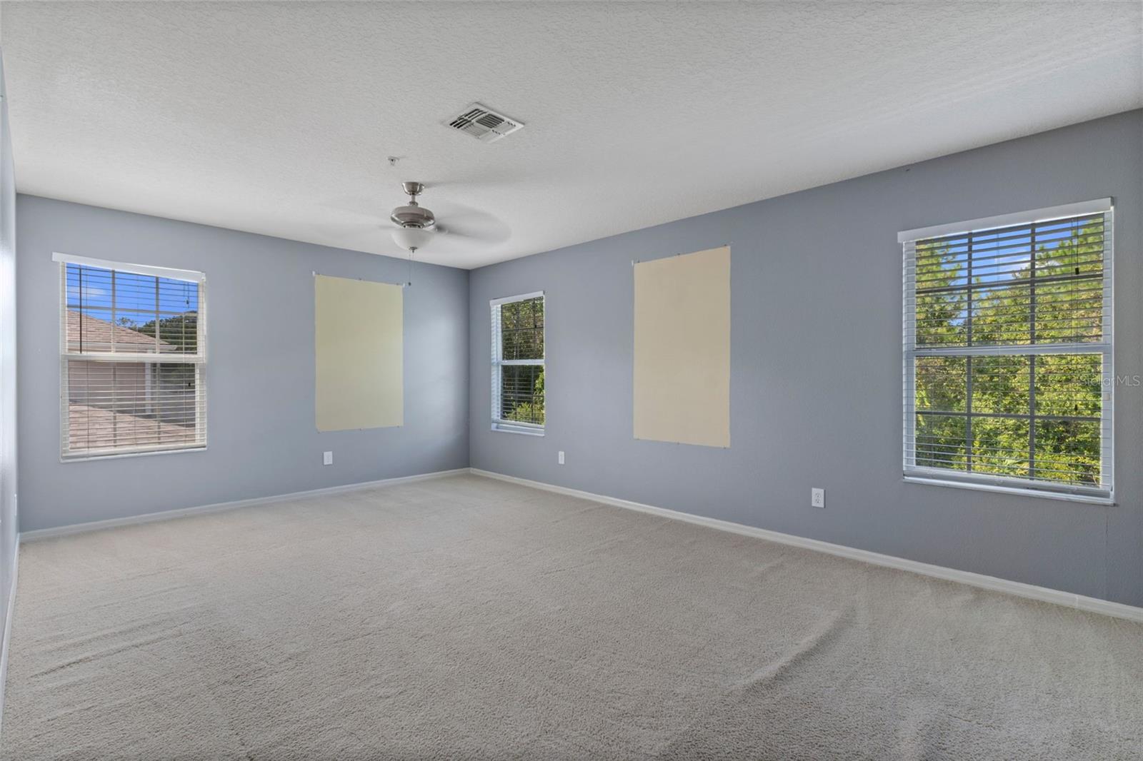Easy Owner Financing Available - Welcome to 9322 Caroline Park Dr – A Stunning 4-bedroom, 3-bath home tucked away in the highly desirable East Park Community in the heart of Lake Nona! From the moment you arrive, the grand contemporary elevation and inviting front porch create a striking first impression. Step inside to discover a spacious, well-designed layout. Just off the entryway, you'll find a private home office and formal dining room, leading into a bright and open Great Room and kitchen, all with serene views of the backyard and conservation area. The chef’s kitchen is a standout feature, equipped with nearly new stainless steel appliances (~1 year old), granite countertops, 42” cabinets, a large island, and a generous bar top—ideal for entertaining family and friends. The expansive primary suite is conveniently located on the first floor and features a luxurious ensuite bath with double vanities, a walk-in shower, a soaking garden tub, and a large walk-in closet. Upstairs, you'll find a massive bonus room—perfect for a home theater, game room, or multi-purpose family space—along with three additional bedrooms and a full bathroom. Step outside to the oversized covered lanai and enjoy the privacy of your spacious backyard with NO Rear Neighbors—thanks to the protected conservation behind the home. This home also features a newer roof (2021) and an OVERSIZED 3 car garage (+- 44’ deep), allowing ample space to store a boat, toys or for a proper home gym! And with top rated schools nearby, your family will have access to some of the best education in the area. Living in East Park means enjoying community trails, playgrounds, and green spaces perfect for bike rides, evening walks, and weekend fun. Located in the heart of Lake Nona offering easy access to all the highly sought after restaurants, shopping, entertainment and located just minutes off Hwy 417 offering easy access to the Orlando International Airport and all of Central Florida. This home will not last long! Call today for a private tour!