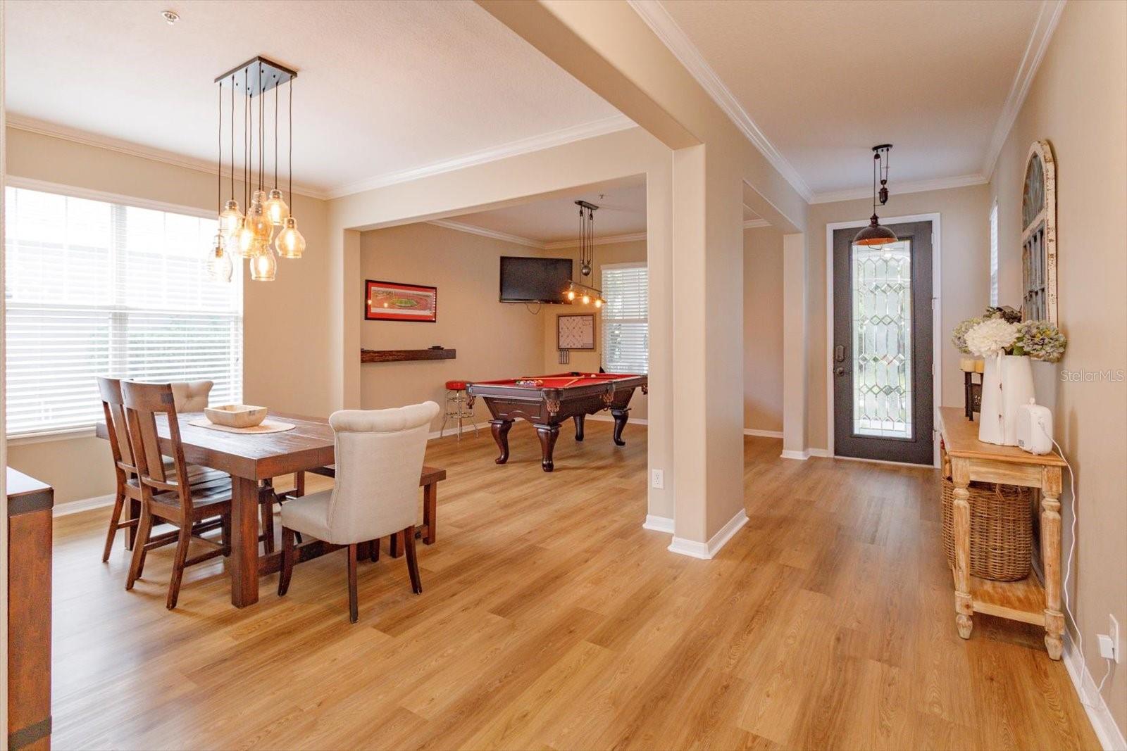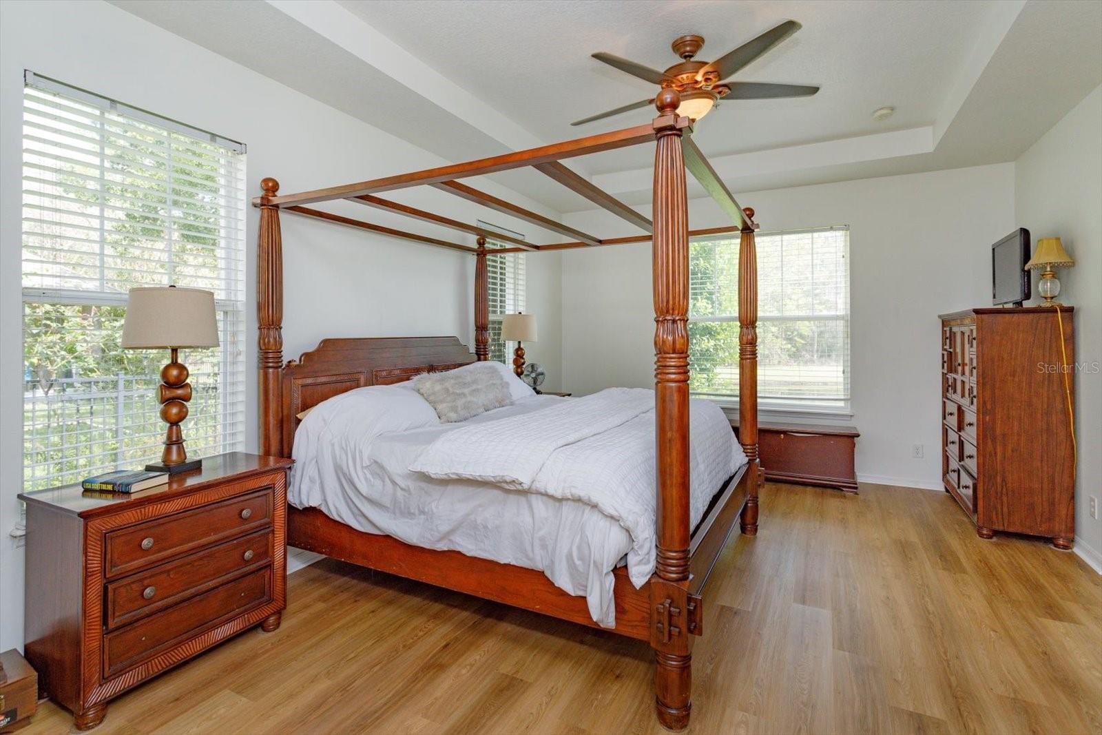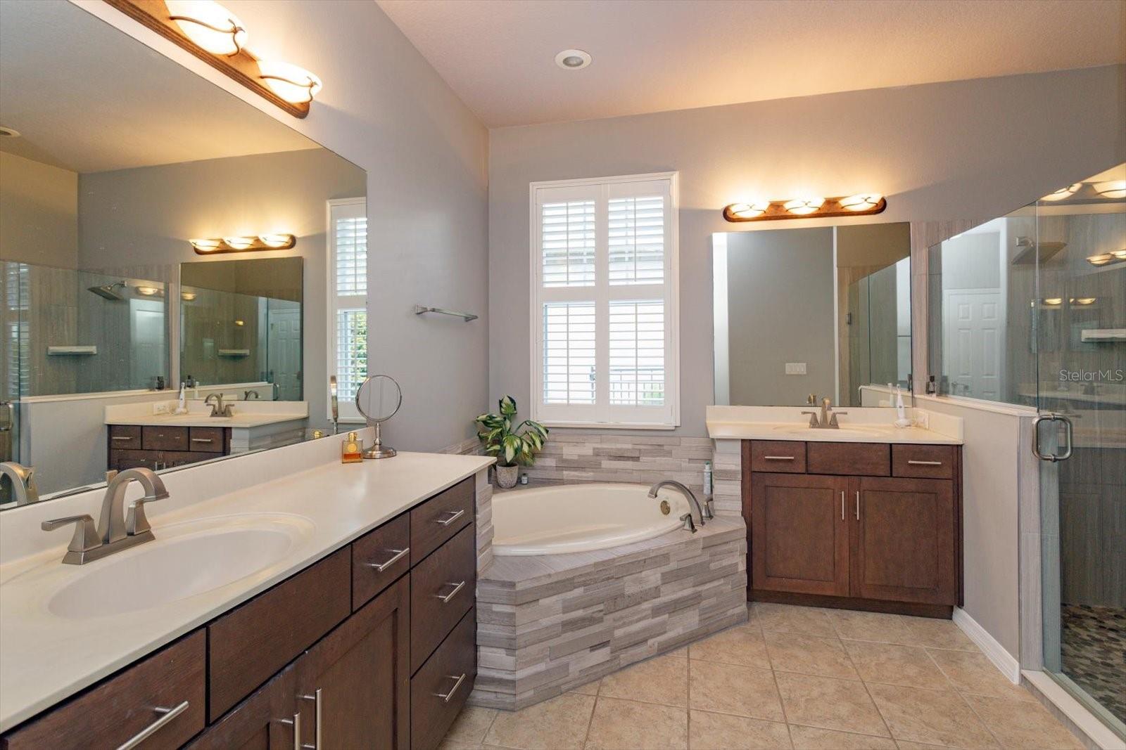 Waterfront living and ALL NEW LVP flooring! This 5-bedroom, 4-bath, 3, 300+ sq. ft. home sits on a rare waterfront, conservation lot in Lake Nona’s sought-after NorthLake Park. Enjoy serene views from your lanai and ultimate privacy with no rear neighbors. Step inside to find 10-foot ceilings, fresh interior paint, NEW LVP flooring, crown molding, and open, inviting spaces. The living room features a custom built-in and cozy wood-burning fireplace. The primary bedroom boasts a renovated, spa-like ensuite with soaking tub, glass shower, and a walk-in closet with direct laundry access. Enjoy peace of mind with major updates already done: NEW ROOF (2024), fresh EXTERIOR PAINT (2025), NEW FLOORS (2025), NEW WATER HEATER (2025) NEW downstairs HVAC, NEW irrigation panel, Nest thermostat, Vivint security system, and more. Living here means more than just a home—you’ll have access to a private dock on Lake Nona with a covered pavilion and a family YMCA membership included with the HOA. Plus community playground and dog park. All this just minutes from Medical City, schools, shopping, dining, and entertainment. Waterfront homes in NorthLake Park are a rare find—schedule your private tour today!
