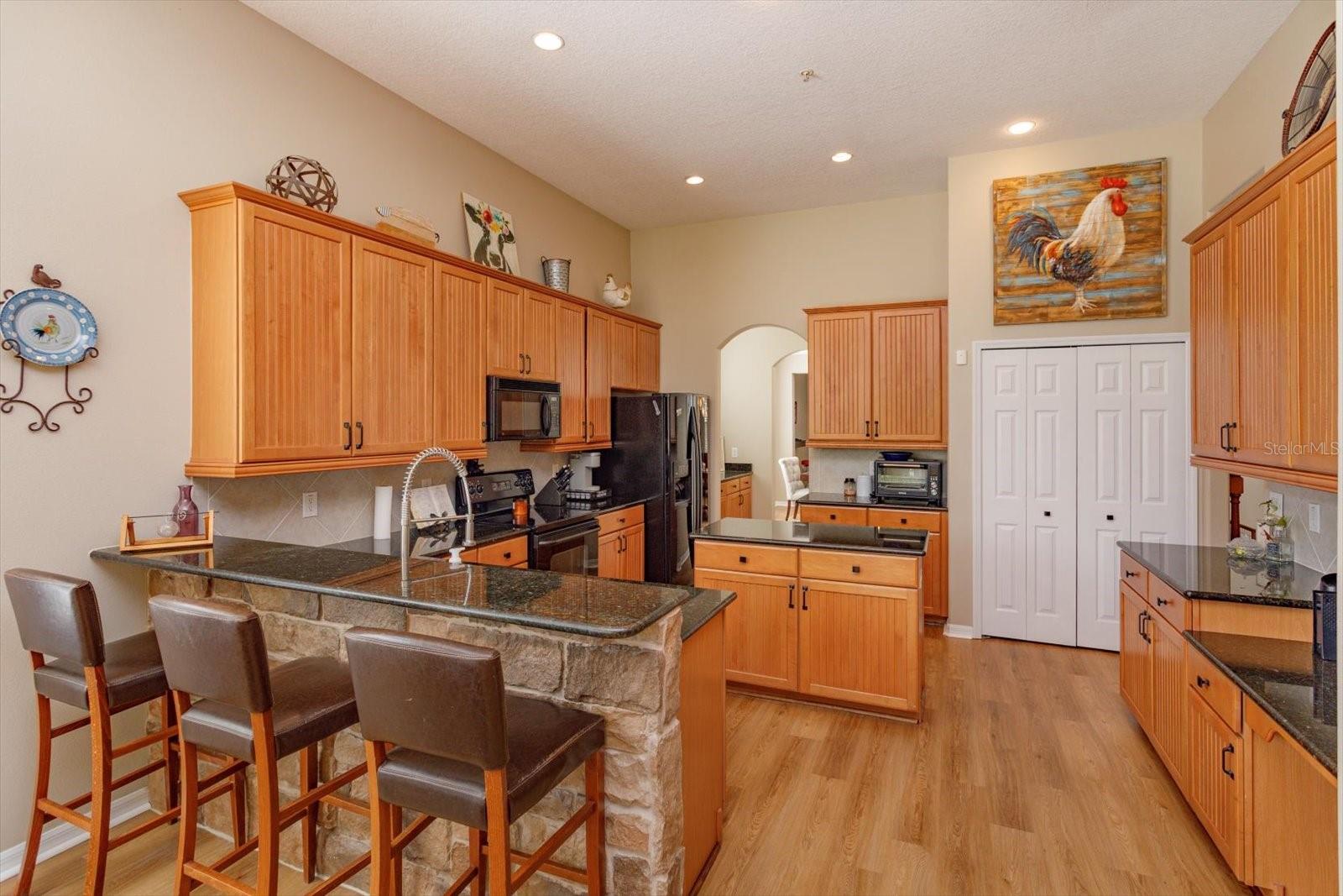 Eat-in Kitchen, High Ceilings, Primary Bedroom Main Floor, Smart Home, Solid Wood Cabinets, Thermostat, Walk-In Closet(s)