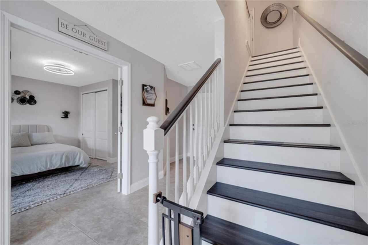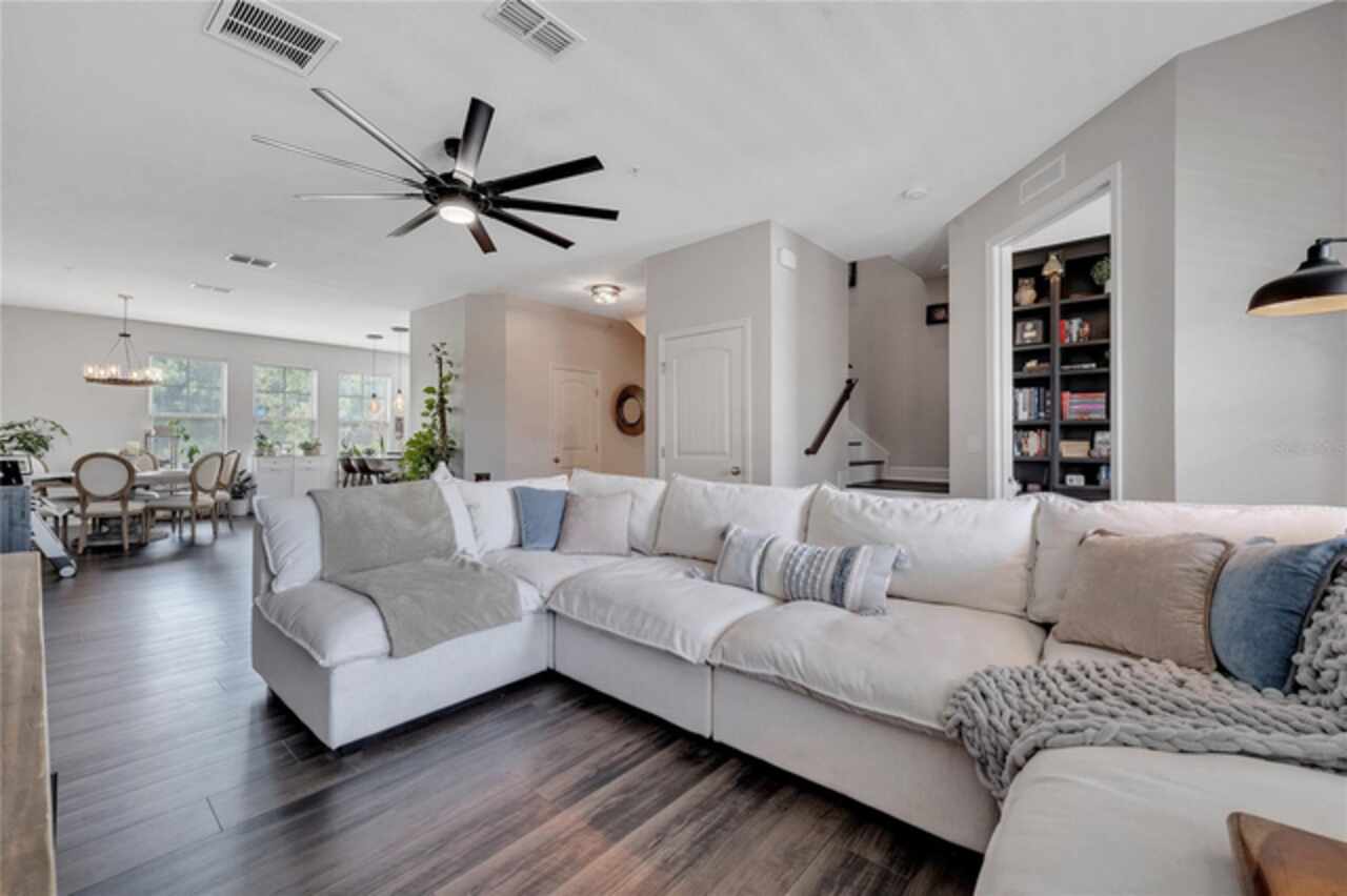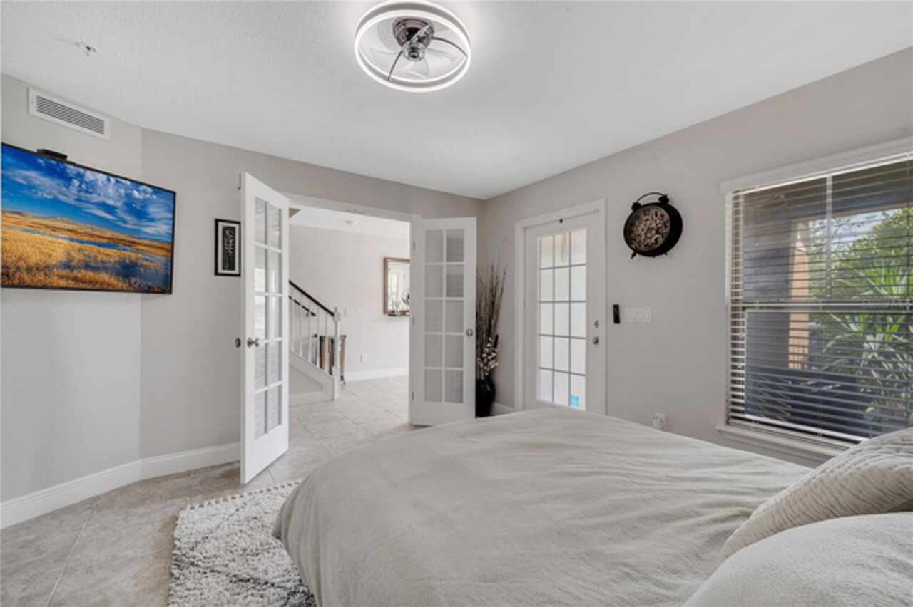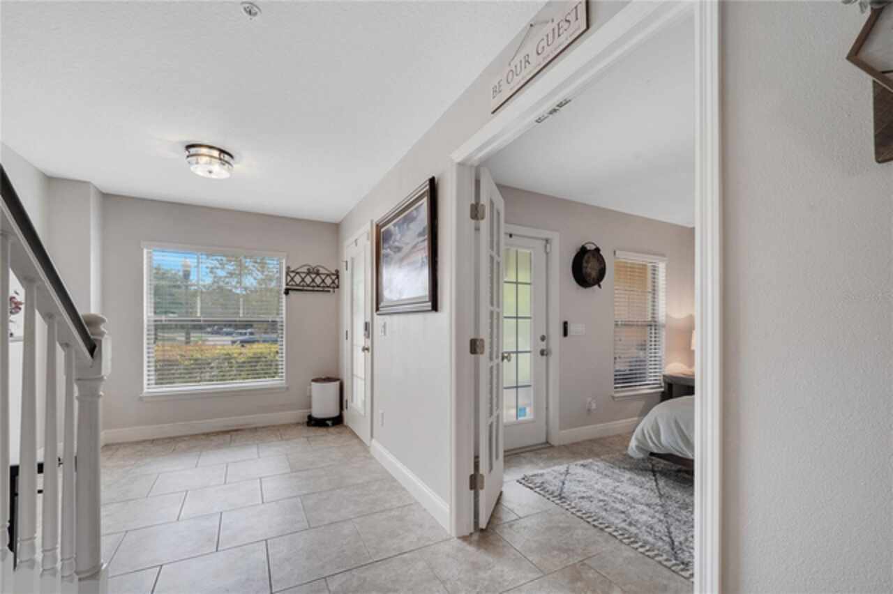 Welcome to this beautifully updated 4-bedroom, 2 full bath, 2 half bath, 3-story townhome that perfectly blends modern upgrades with everyday comfort offering a warm and inviting place to call home. Exterior stucco is currently being refaced throughout the entire community, meaning this property will look like new inside and out! Lovingly maintained, this home has never been “just a house.” The only reason for selling is the need for more space. Inside, thoughtful updates focus on the main living areas where the second floor has been completely refreshed with luxury vinyl plank flooring, fresh paint, a stylishly updated kitchen, and refinished stairs that enhance the home’s modern appeal. The bright and open second-floor layout features 9-foot ceilings and a seamless flow between the kitchen, dining, and living areas. The kitchen boasts granite countertops, stainless steel appliances, an island, and generous pantry space ideal for cooking, entertaining, or simply enjoying daily life. Just off the living room, a dedicated office or den with custom built-in shelving provides the perfect space for a cozy library, creative corner, or work-from-home setup, complete with balcony access overlooking a peaceful pond and fountain. Downstairs, the first floor has been enhanced with an additional bedroom featuring elegant French doors and its own private entrance a versatile space ideal for guests, extended family, or a private home office or gym. Upstairs, the spacious primary suite offers a tray ceiling, walk-in closet, and tranquil pond views. The en-suite bath includes a soaking tub, dual vanities, walk-in shower, and private water closet. Two additional bedrooms, a full bath, and a conveniently located laundry closet with washer and dryer complete the upper level. Additional highlights include a 2-car garage with an extended driveway, a charming front porch, and peaceful conservation views from the back. The affordable HOA covers the roof, exterior maintenance, and current stucco/paint upgrades making this home beautifully low-maintenance. The desirable Ravinia community offers wonderful amenities such as a dog park, lake trail, tennis, pickleball, basketball, and volleyball courts, plus a playground. Enjoy quick access to 417, 528, top-rated schools, Valencia College, UCF Medical, Orlando International Airport, beaches, shopping, and more. Thoughtfully updated, filled with care, and ready for its next chapter come experience what makes this home so special.