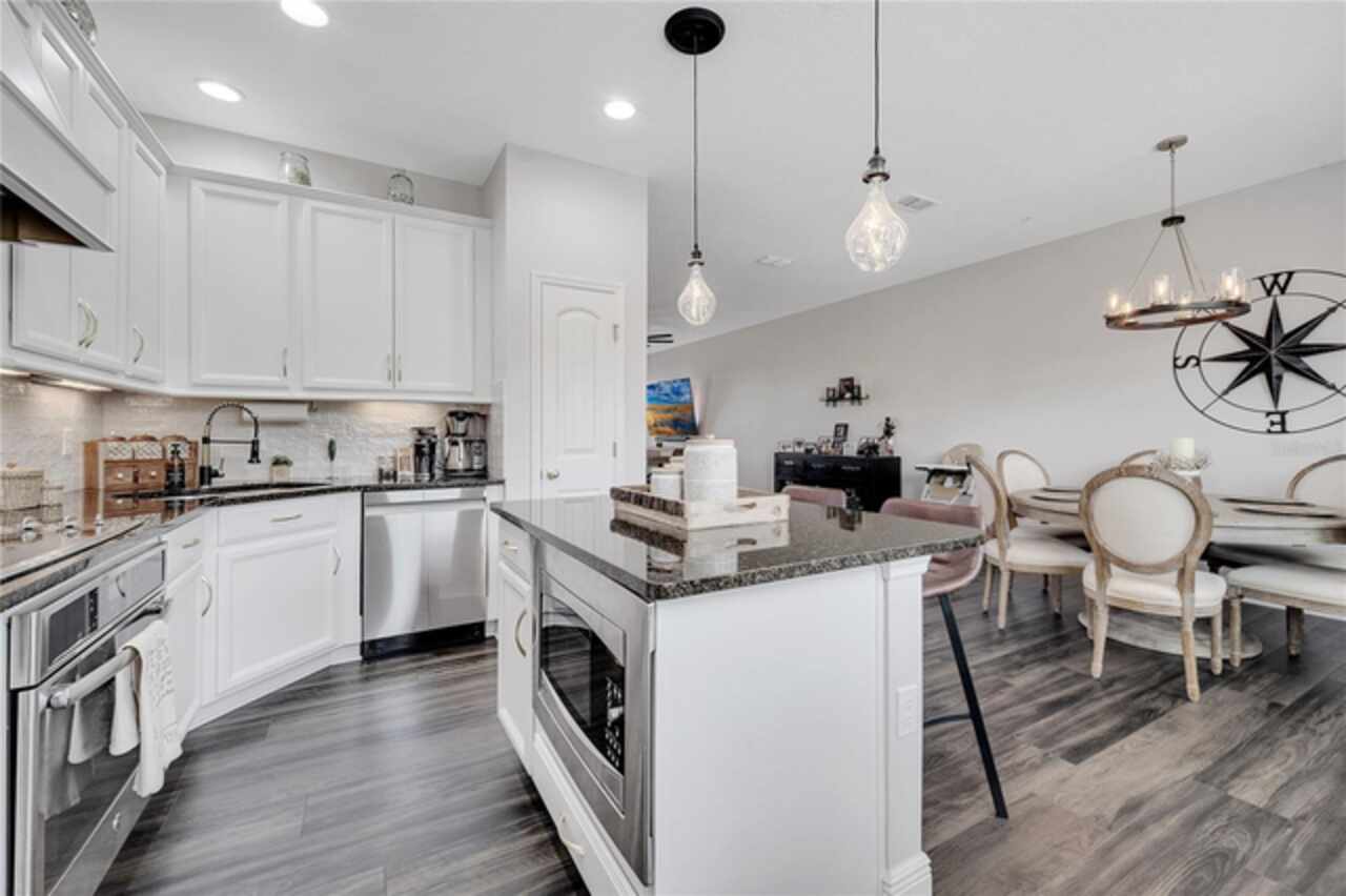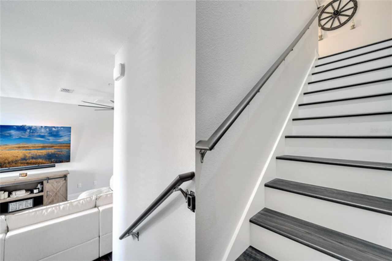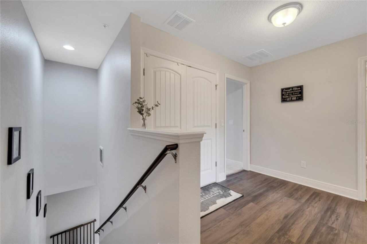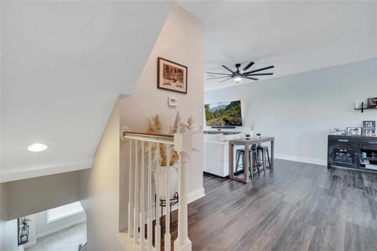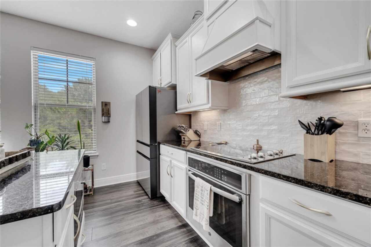 Welcome to this beautifully updated 4-bedroom, 2 full bath, 2 half bath, 3-story townhome that perfectly blends modern upgrades with everyday comfort offering a warm and inviting place to call home. Exterior stucco is currently being refaced throughout the entire community, meaning this property will look like new inside and out! Lovingly maintained, this home has never been “just a house.” The only reason for selling is the need for more space. Inside, thoughtful updates focus on the main living areas where the second floor has been completely refreshed with luxury vinyl plank flooring, fresh paint, a stylishly updated kitchen, and refinished stairs that enhance the home’s modern appeal. The bright and open second-floor layout features 9-foot ceilings and a seamless flow between the kitchen, dining, and living areas. The kitchen boasts granite countertops, stainless steel appliances, an island, and generous pantry space ideal for cooking, entertaining, or simply enjoying daily life. Just off the living room, a dedicated office or den with custom built-in shelving provides the perfect space for a cozy library, creative corner, or work-from-home setup, complete with balcony access overlooking a peaceful pond and fountain. Downstairs, the first floor has been enhanced with an additional bedroom featuring elegant French doors and its own private entrance a versatile space ideal for guests, extended family, or a private home office or gym. Upstairs, the spacious primary suite offers a tray ceiling, walk-in closet, and tranquil pond views. The en-suite bath includes a soaking tub, dual vanities, walk-in shower, and private water closet. Two additional bedrooms, a full bath, and a conveniently located laundry closet with washer and dryer complete the upper level. Additional highlights include a 2-car garage with an extended driveway, a charming front porch, and peaceful conservation views from the back. The affordable HOA covers the roof, exterior maintenance, and current stucco/paint upgrades making this home beautifully low-maintenance. The desirable Ravinia community offers wonderful amenities such as a dog park, lake trail, tennis, pickleball, basketball, and volleyball courts, plus a playground. Enjoy quick access to 417, 528, top-rated schools, Valencia College, UCF Medical, Orlando International Airport, beaches, shopping, and more. Thoughtfully updated, filled with care, and ready for its next chapter come experience what makes this home so special.