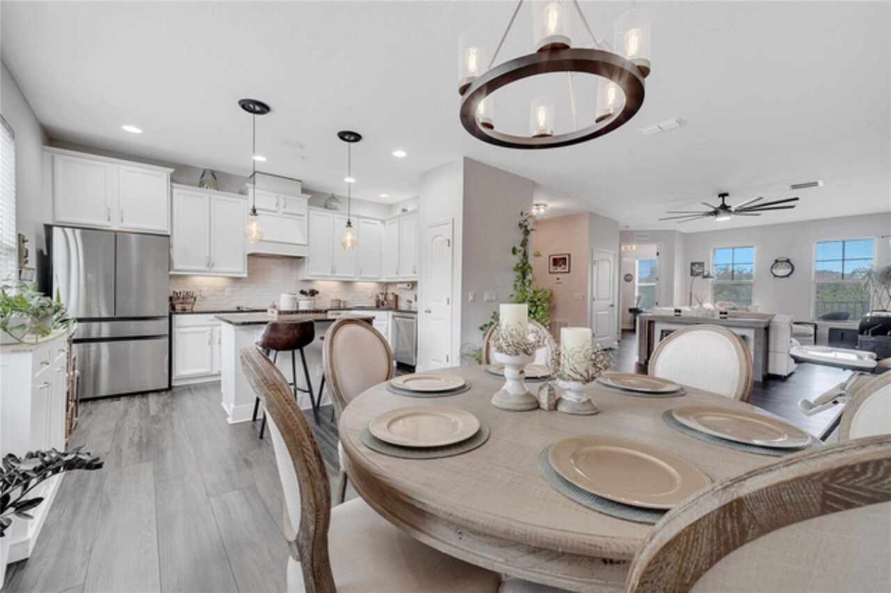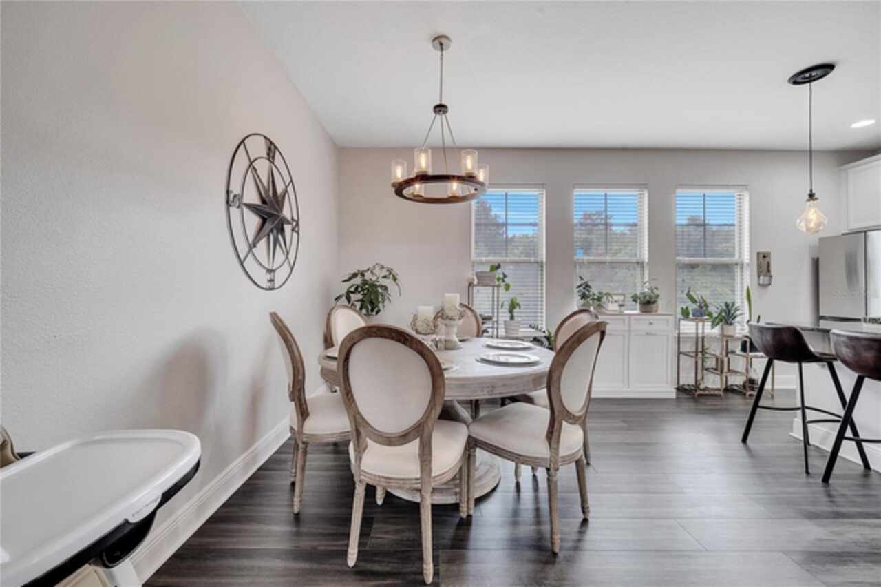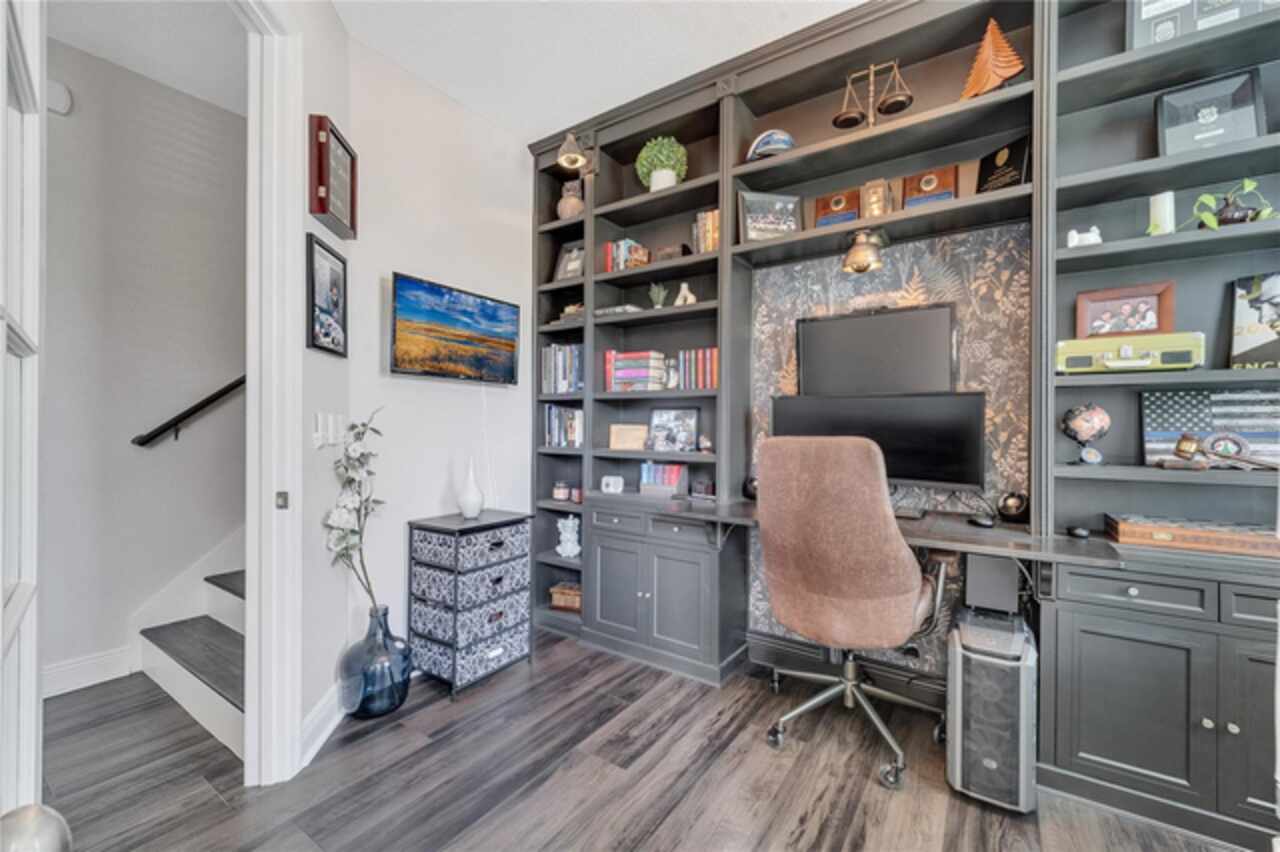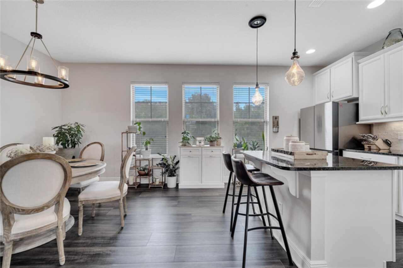 Welcome to this beautifully updated 4-bedroom, 2 full bath, 2 half bath, 3-story townhome that perfectly blends modern upgrades with everyday comfort offering a warm and inviting place to call home. Exterior stucco is currently being refaced throughout the entire community, meaning this property will look like new inside and out! Lovingly maintained, this home has never been “just a house.” The only reason for selling is the need for more space. Inside, thoughtful updates focus on the main living areas where the second floor has been completely refreshed with luxury vinyl plank flooring, fresh paint, a stylishly updated kitchen, and refinished stairs that enhance the home’s modern appeal. The bright and open second-floor layout features 9-foot ceilings and a seamless flow between the kitchen, dining, and living areas. The kitchen boasts granite countertops, stainless steel appliances, an island, and generous pantry space ideal for cooking, entertaining, or simply enjoying daily life. Just off the living room, a dedicated office or den with custom built-in shelving provides the perfect space for a cozy library, creative corner, or work-from-home setup, complete with balcony access overlooking a peaceful pond and fountain. Downstairs, the first floor has been enhanced with an additional bedroom featuring elegant French doors and its own private entrance a versatile space ideal for guests, extended family, or a private home office or gym. Upstairs, the spacious primary suite offers a tray ceiling, walk-in closet, and tranquil pond views. The en-suite bath includes a soaking tub, dual vanities, walk-in shower, and private water closet. Two additional bedrooms, a full bath, and a conveniently located laundry closet with washer and dryer complete the upper level. Additional highlights include a 2-car garage with an extended driveway, a charming front porch, and peaceful conservation views from the back. The affordable HOA covers the roof, exterior maintenance, and current stucco/paint upgrades making this home beautifully low-maintenance. The desirable Ravinia community offers wonderful amenities such as a dog park, lake trail, tennis, pickleball, basketball, and volleyball courts, plus a playground. Enjoy quick access to 417, 528, top-rated schools, Valencia College, UCF Medical, Orlando International Airport, beaches, shopping, and more. Thoughtfully updated, filled with care, and ready for its next chapter come experience what makes this home so special.