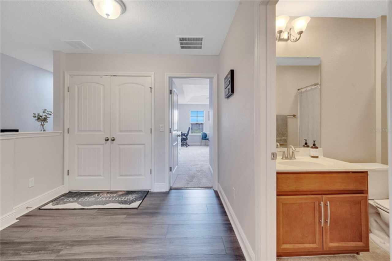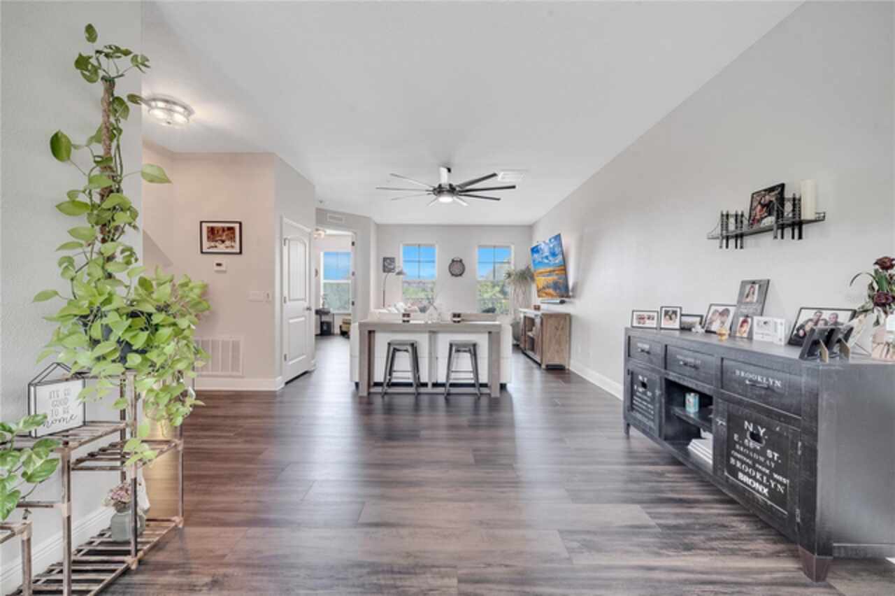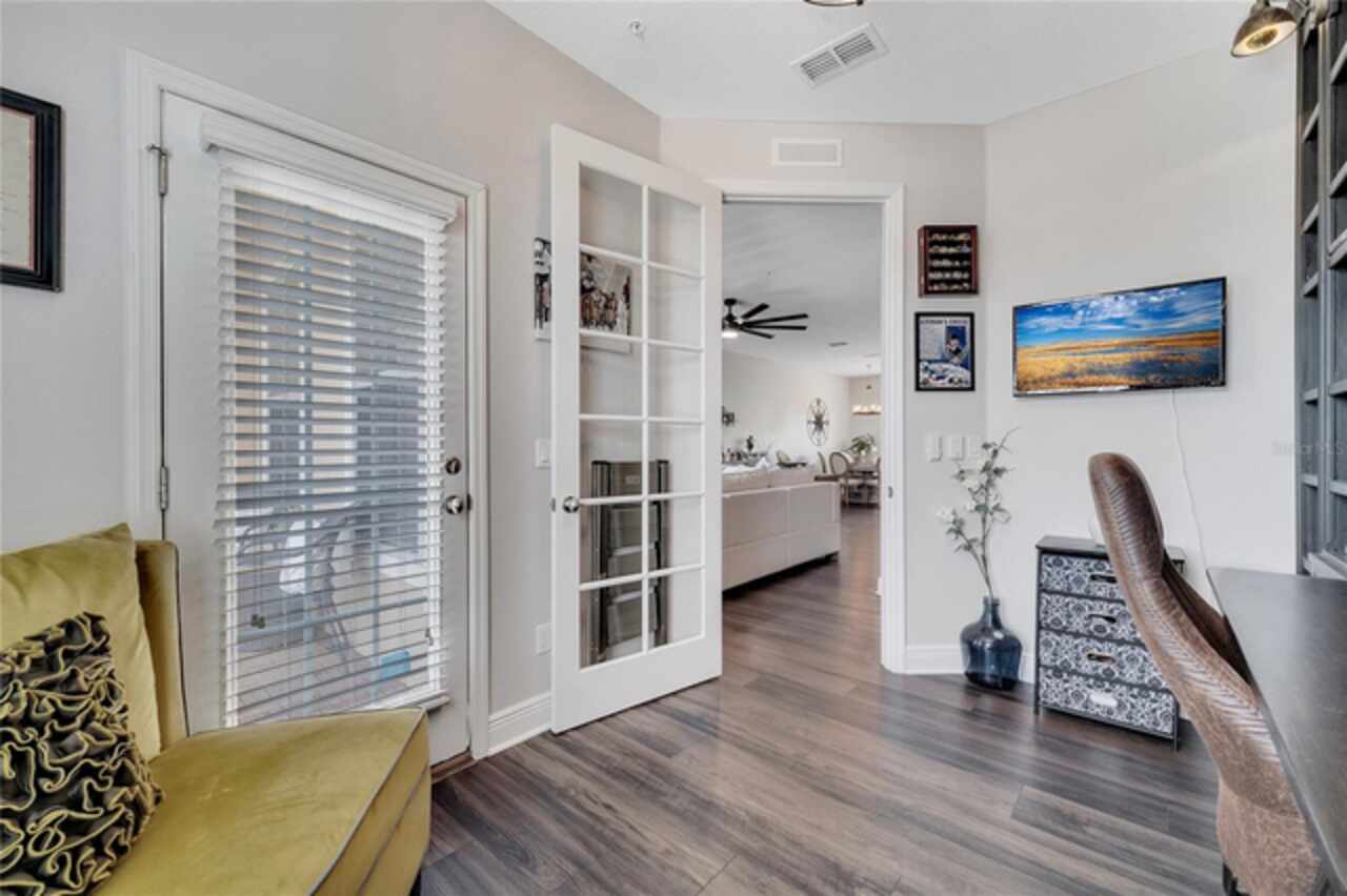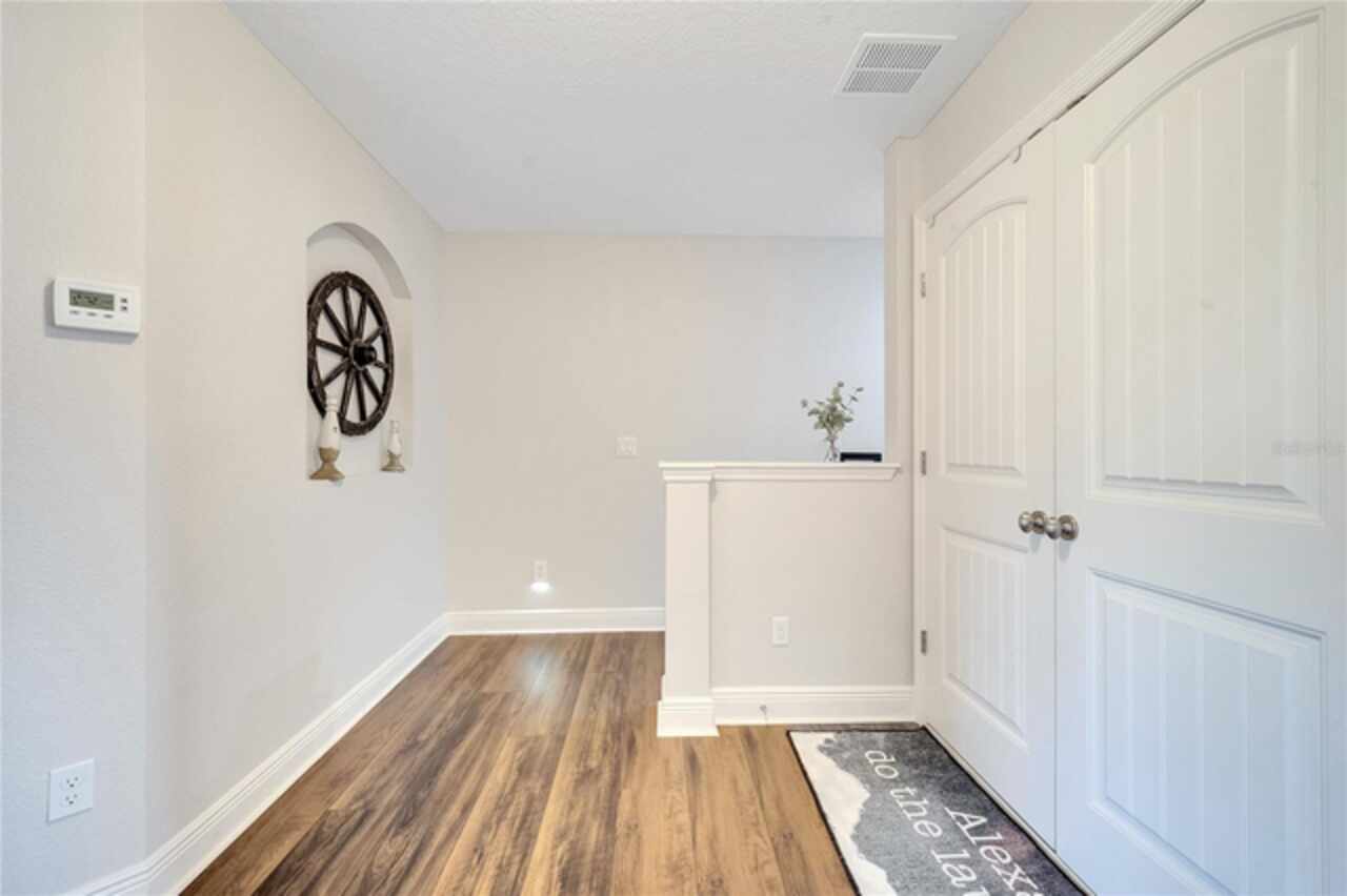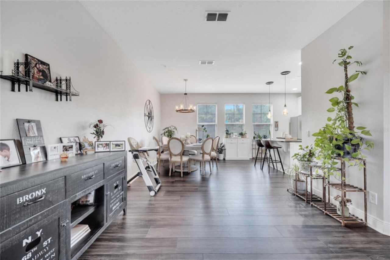 Welcome to this beautifully updated 4-bedroom, 2 full bath, 2 half bath, 3-story townhome that perfectly blends modern upgrades with everyday comfort offering a warm and inviting place to call home. Exterior stucco is currently being refaced throughout the entire community, meaning this property will look like new inside and out! Lovingly maintained, this home has never been “just a house.” The only reason for selling is the need for more space. Inside, thoughtful updates focus on the main living areas where the second floor has been completely refreshed with luxury vinyl plank flooring, fresh paint, a stylishly updated kitchen, and refinished stairs that enhance the home’s modern appeal. The bright and open second-floor layout features 9-foot ceilings and a seamless flow between the kitchen, dining, and living areas. The kitchen boasts granite countertops, stainless steel appliances, an island, and generous pantry space ideal for cooking, entertaining, or simply enjoying daily life. Just off the living room, a dedicated office or den with custom built-in shelving provides the perfect space for a cozy library, creative corner, or work-from-home setup, complete with balcony access overlooking a peaceful pond and fountain. Downstairs, the first floor has been enhanced with an additional bedroom featuring elegant French doors and its own private entrance a versatile space ideal for guests, extended family, or a private home office or gym. Upstairs, the spacious primary suite offers a tray ceiling, walk-in closet, and tranquil pond views. The en-suite bath includes a soaking tub, dual vanities, walk-in shower, and private water closet. Two additional bedrooms, a full bath, and a conveniently located laundry closet with washer and dryer complete the upper level. Additional highlights include a 2-car garage with an extended driveway, a charming front porch, and peaceful conservation views from the back. The affordable HOA covers the roof, exterior maintenance, and current stucco/paint upgrades making this home beautifully low-maintenance. The desirable Ravinia community offers wonderful amenities such as a dog park, lake trail, tennis, pickleball, basketball, and volleyball courts, plus a playground. Enjoy quick access to 417, 528, top-rated schools, Valencia College, UCF Medical, Orlando International Airport, beaches, shopping, and more. Thoughtfully updated, filled with care, and ready for its next chapter come experience what makes this home so special.