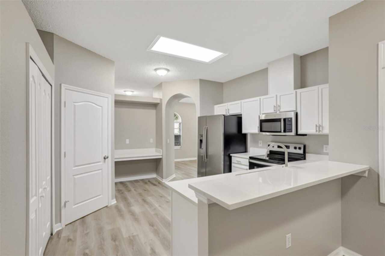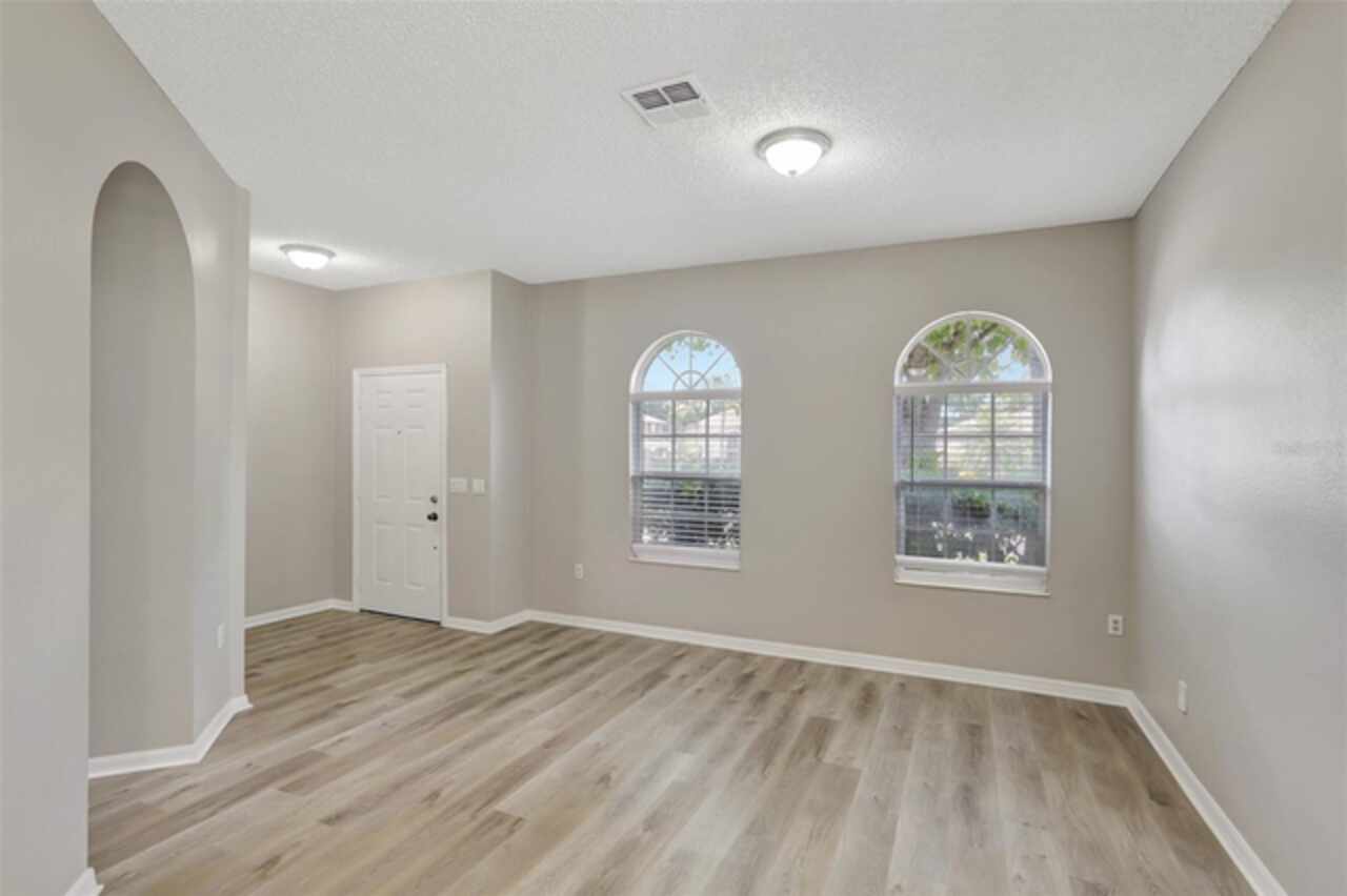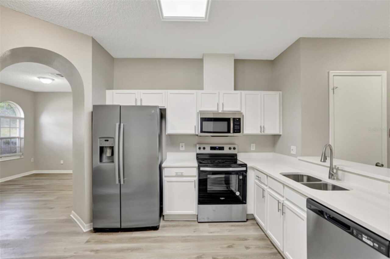 Under contract-accepting backup offers. Welcome home to 9999 Shadow Creek Dr, nestled within the Gated enclave of Mirabella at La Vina in the heart of Lake Nona. This updated 4-bedroom, 2-bathroom contemporary-style home offers 1, 710 SqFt of thoughtfully designed living space on a private lot that backs up to conservation—offering unmatched tranquility and privacy plus PVC Fencing around the property. Step inside to discover luxury vinyl plank flooring throughout, creating a seamless and durable flow from room to room. The entire kitchen has been tastefully remodeled, featuring stunning quartz countertops, sleek white cabinetry, and a full suite of stainless steel appliances. Interior laundry room, automatic garage door opener. The open-concept layout connects the kitchen to the family room and breakfast nook, all illuminated by natural light pouring through the glass sliders leading to the fenced backyard. The split-bedroom floor plan provides separation between the spacious owner’s suite and guest bedrooms. Located just minutes from Medical City, Nemours, VA Hospital, UCF College of Medicine, A-rated schools, shopping, dining, and major highways (417 & 528), this home places you at the center of convenience and innovation. Whether you’re entertaining indoors or enjoying peaceful moments under the mature trees in your private backyard, this home offers the best of Lake Nona living. Don’t miss your chance to call this beautifully updated property your own.*** Brand New Stove, AC was repalced in 2023 and Water Heater replaced in 2024***The seller is currently only waiting on HOA approval to proceed with the new roof installation