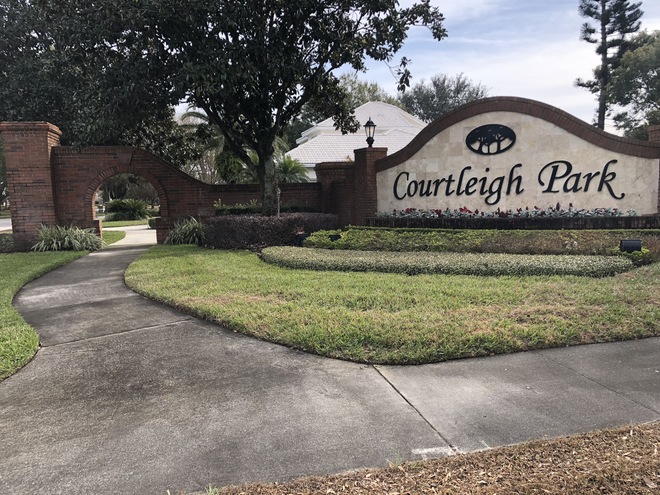 Directions to Courtleigh Park. From South Apopka-Vineland Rd and Conroy Windermere Rd go North on South Apopka Vineland Rd, turn right on Courtleigh Park Dr. Home Owner Association is approximately 437.50 semi annual. This includes common grounds, picnic area, tennis courts and playground. Many homes in this subdivision have tasteful setbacks, private pools and sit on over sized lots half acre to one acre and shows 114 1990-1996 2400-4600 square feet homes with great curb appeal with landscaping range from . Community has playground, basketball, tennis and picnic area for family fun. Top rated “A” schools are Windy Ridge Elementary, Chain of Lakes Middle and Olympia High. In 1989 the public library opened offering many classes, events and DIY. Convenient to many different tastes of shopping to include the Florida and Millennium Mall. Also upscale dining on restaurant row on Sand Lake Road where you can shop and eat all day long with the family. Traders Joe, Winn Dixie, Publix, Whole Foods and BJ Wholesale are nearby.