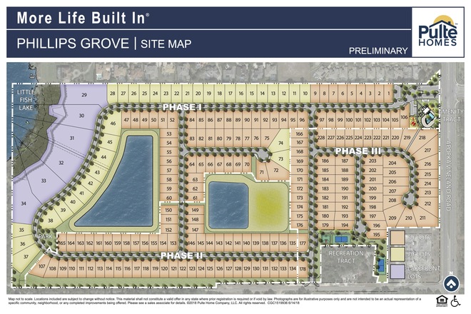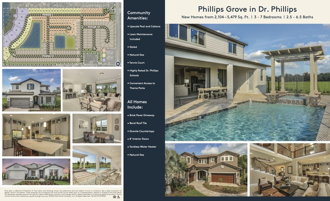 Phillips Grove is now selling out! Right across the street will be another huge Pulte housing community about to spring up. This is a premium location to everything you need access to. This will be a gated community and guard building so that in future the community decides to have it manned you can. 225 homes, 3 cul de sac's with quiet roads, 2 ponds and 50+ water views. six 1 acre lots on Fish Lake which is connected to the Butler Chain of Lakes. Community pool, splash pad two tennis courts and landscaping included. Community pool and clubhouse will be available. Energy efficient homes up to 7 bedrooms 4.5 bath and 3 car garage up to 5000 square feet. Base prices run 444,990 - 660,990. 13 floor plans available to choose with lots 50-60 feet wide. Have your choice of gourmet kitchens, den plus media room, lanai, 20 feet ceilings gathering room, 8 foot doors, crown molding and more! Get a chance to choose your perfect lot whether it is oversized, water view, quiet street, lakefront, corner or pond the choice is yours now. Lot prices run10K to 200K. There are several already marked down to sell. Pool and clubhouse will be built.